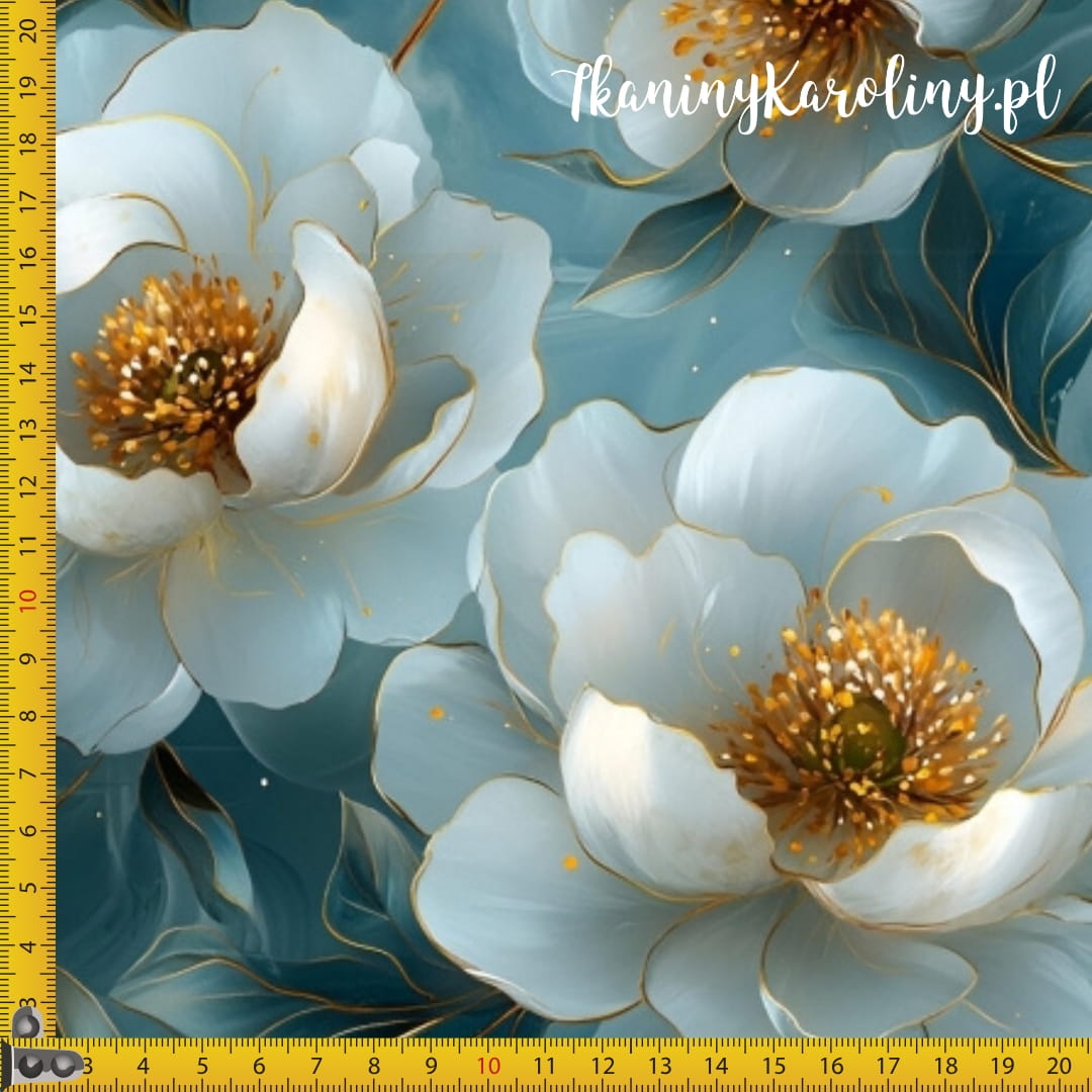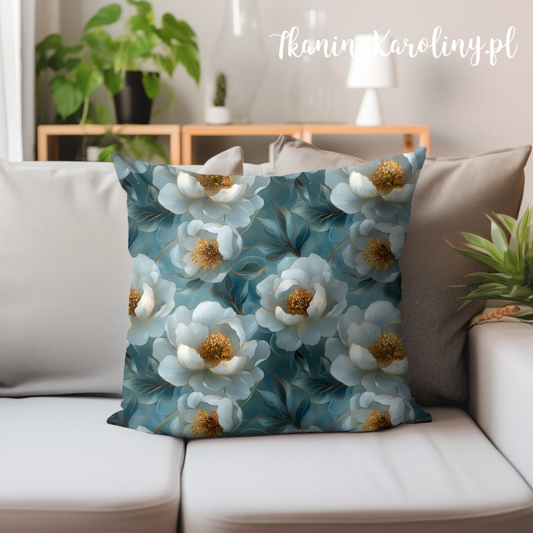 DRUKOWANY WELUR TAPICERSKI Piwonie perłowe 7 - na morskiej zieleni [6-8]