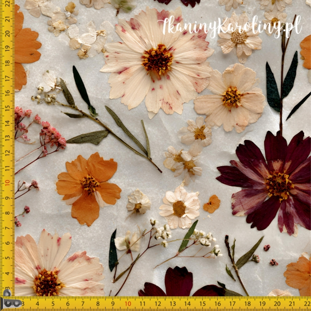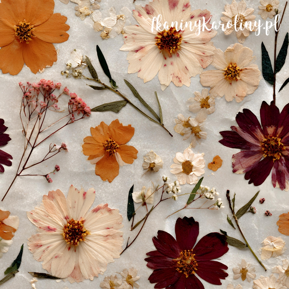 OD RĘKI WELUR TAPICERSKI Kwiaty suszone 27 - małe i duże pomarańczowe, kremowe i bordowe