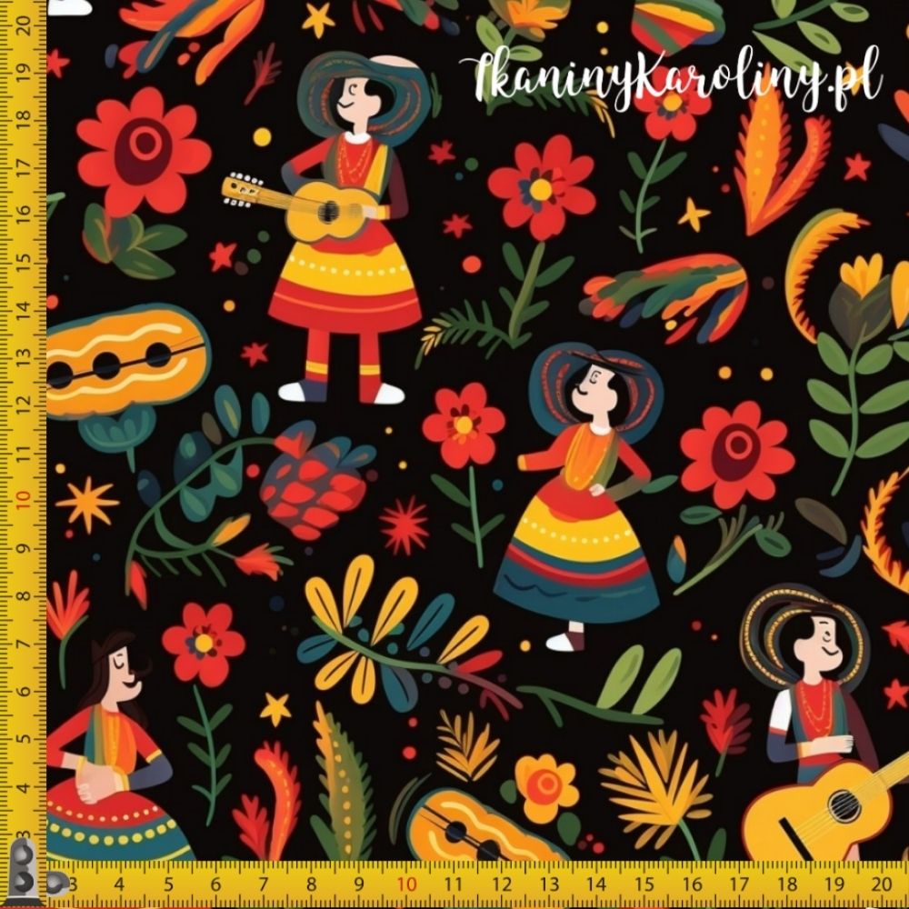 Mariachi na czarnym tle, otoczeni kwiatami – jak serenada prosto z Meksyku: trochę elegancji, trochę folkloru i całe mnóstwo muzycznej energii, która zakwita razem z ornamentem.