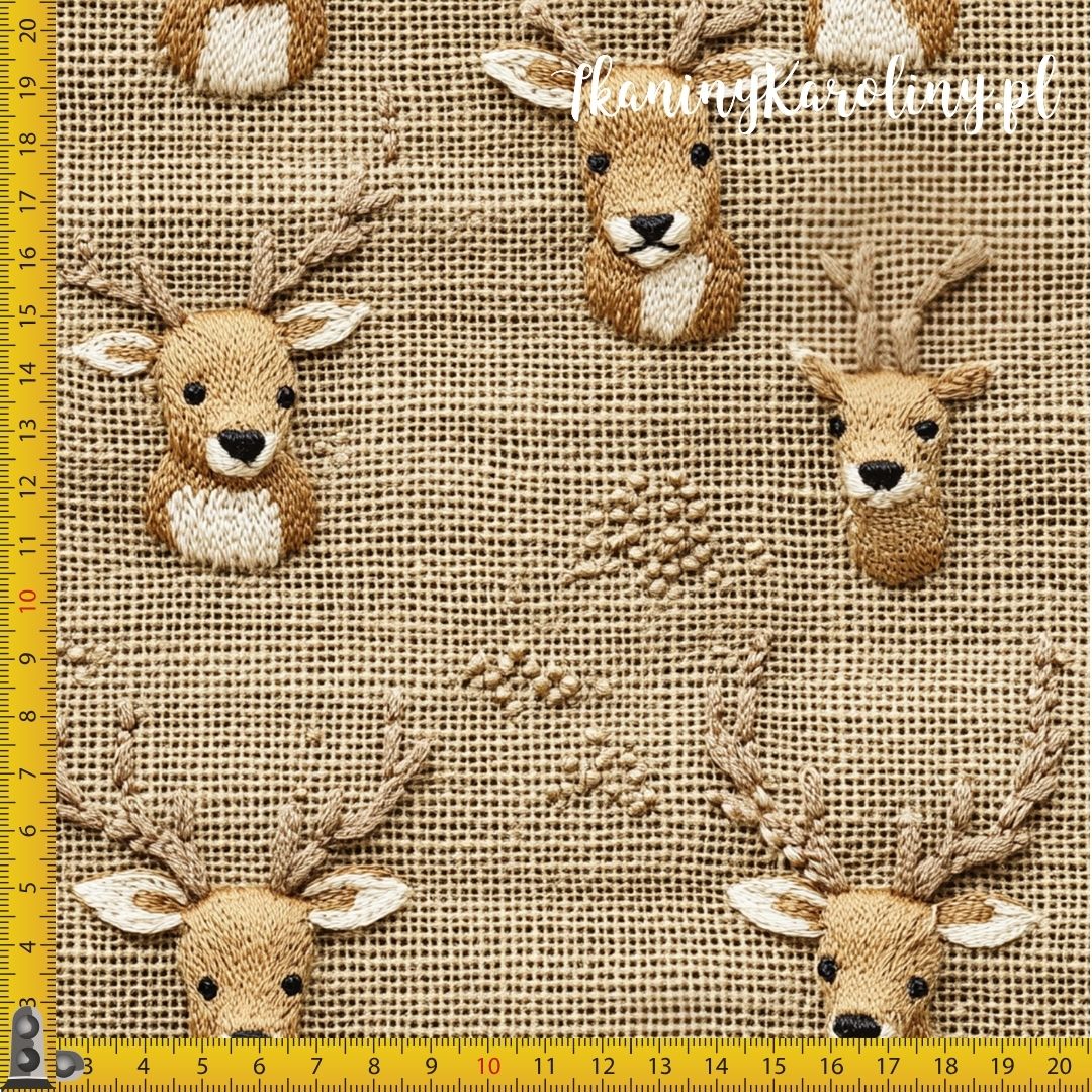 Jelenie, jak haftowane na tle beżowej juty w wersji softshell – materiał, który wygląda wyjątkowo, a jednocześnie chroni przed wiatrem i sprawdzi się w praktycznych projektach.