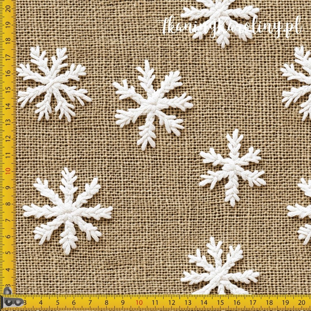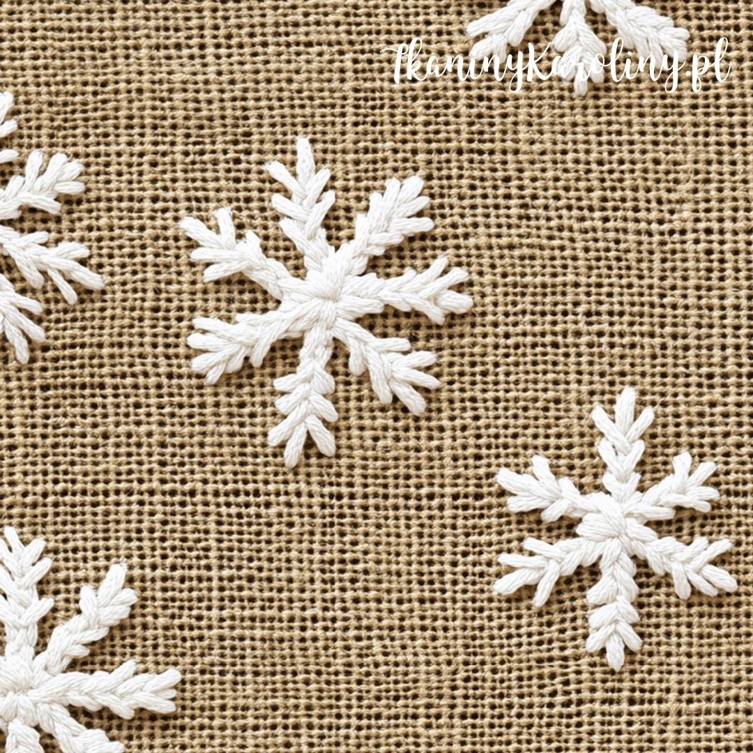 Śnieżynki na tle juty w wersji softshell – materiał, który wygląda wyjątkowo, a jednocześnie chroni przed wiatrem i sprawdzi się w praktycznych projektach.
