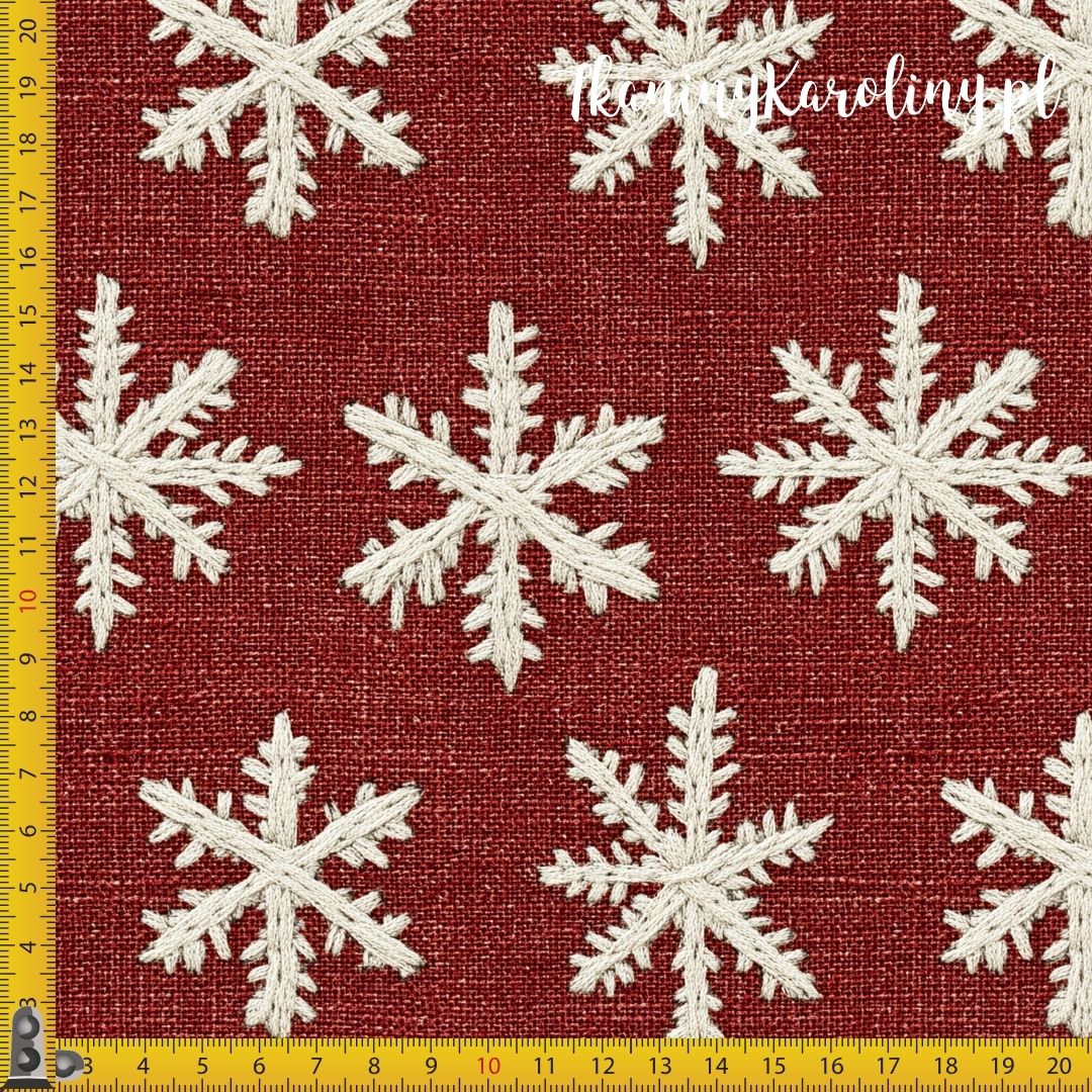 Śnieżynki na tle juty w wersji softshell – materiał, który wygląda wyjątkowo, a jednocześnie chroni przed wiatrem i sprawdzi się w praktycznych projektach.
