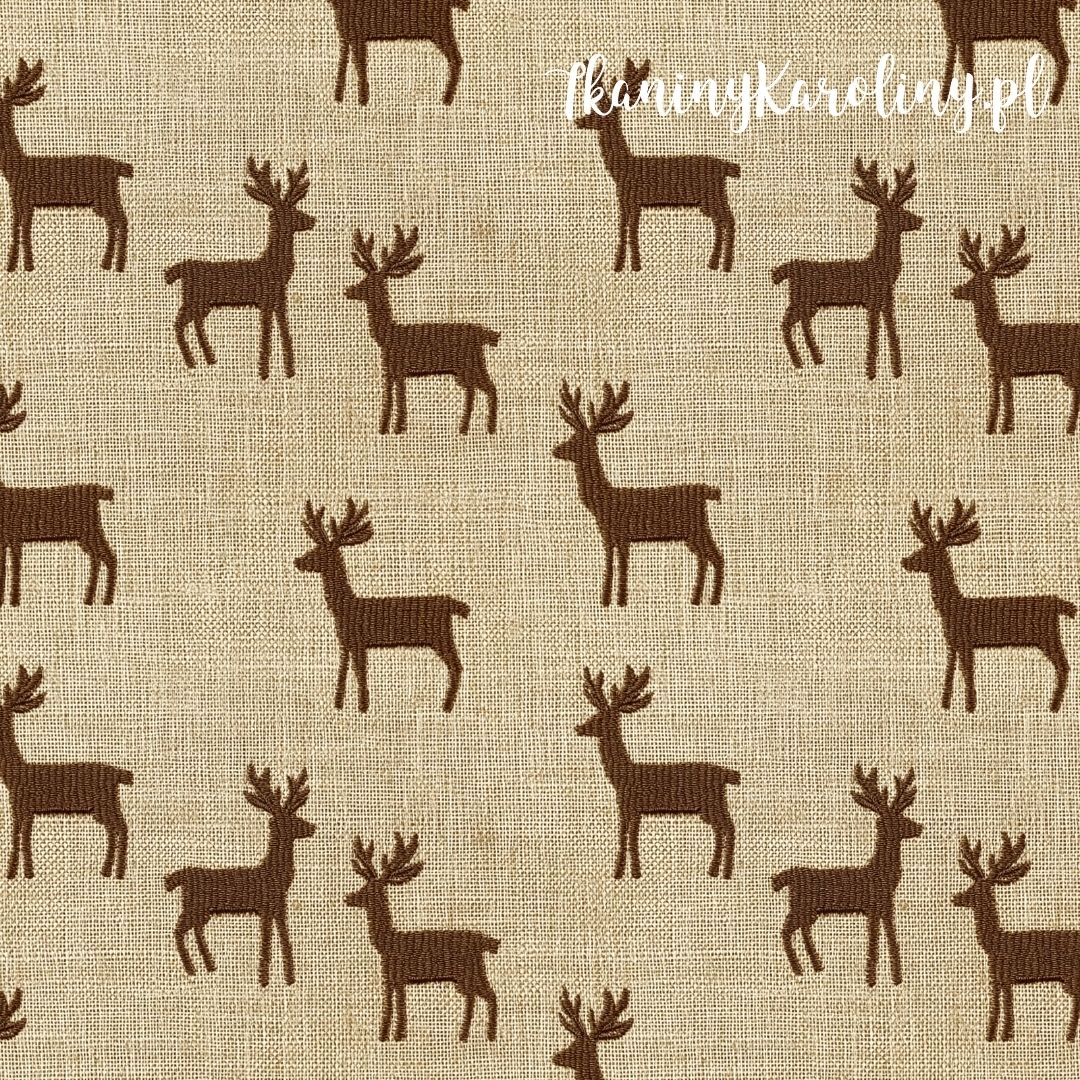 SOFTSHELL WODOODPORNY Wzory świąteczne, imitacja juty - sylwetki brązowych jeleni na beżu [6-8]