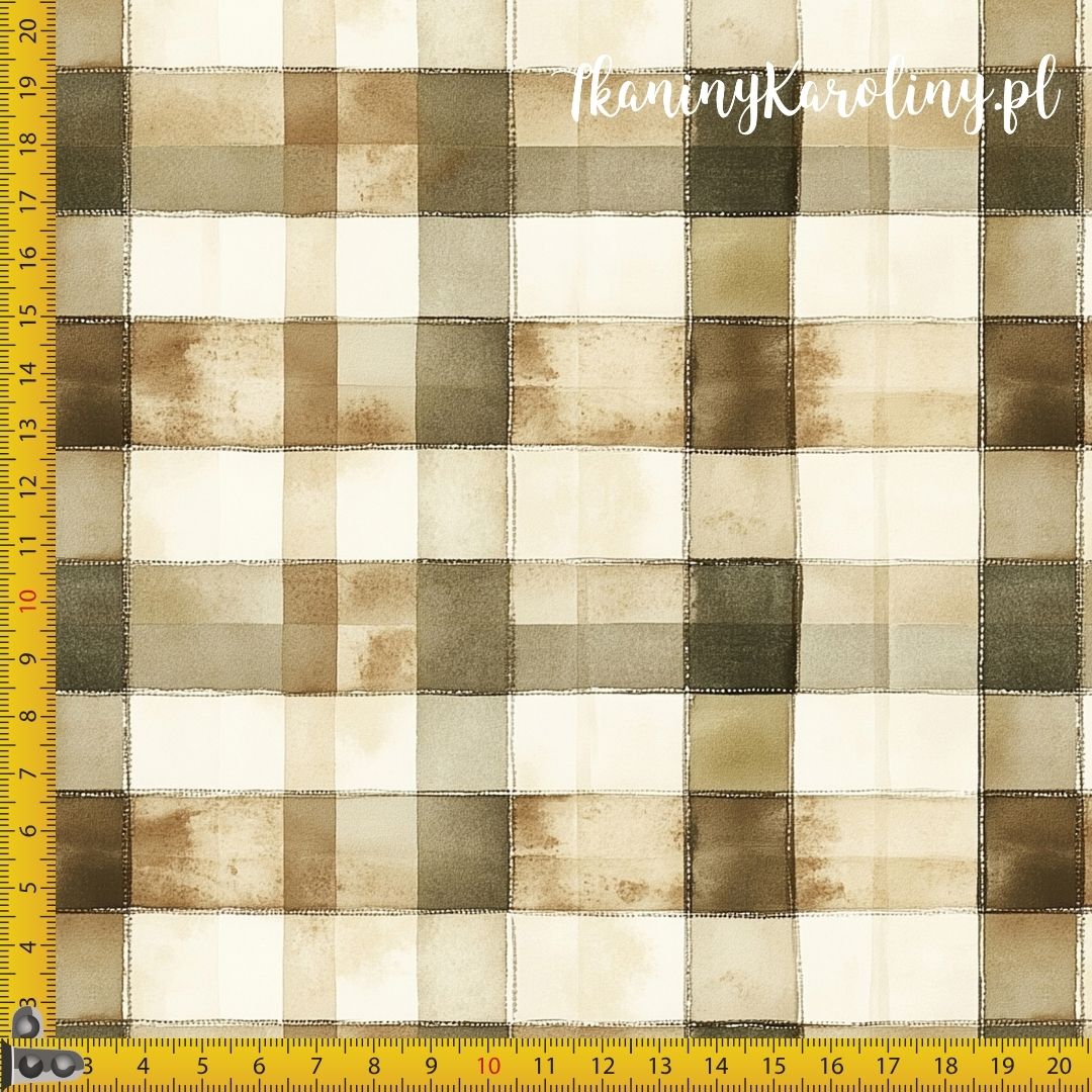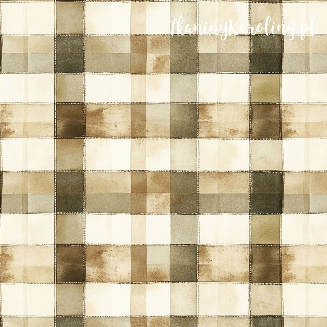 SOFTSHELL WODOODPORNY Wzory świąteczne - beżowobrązowa krata [6-8]