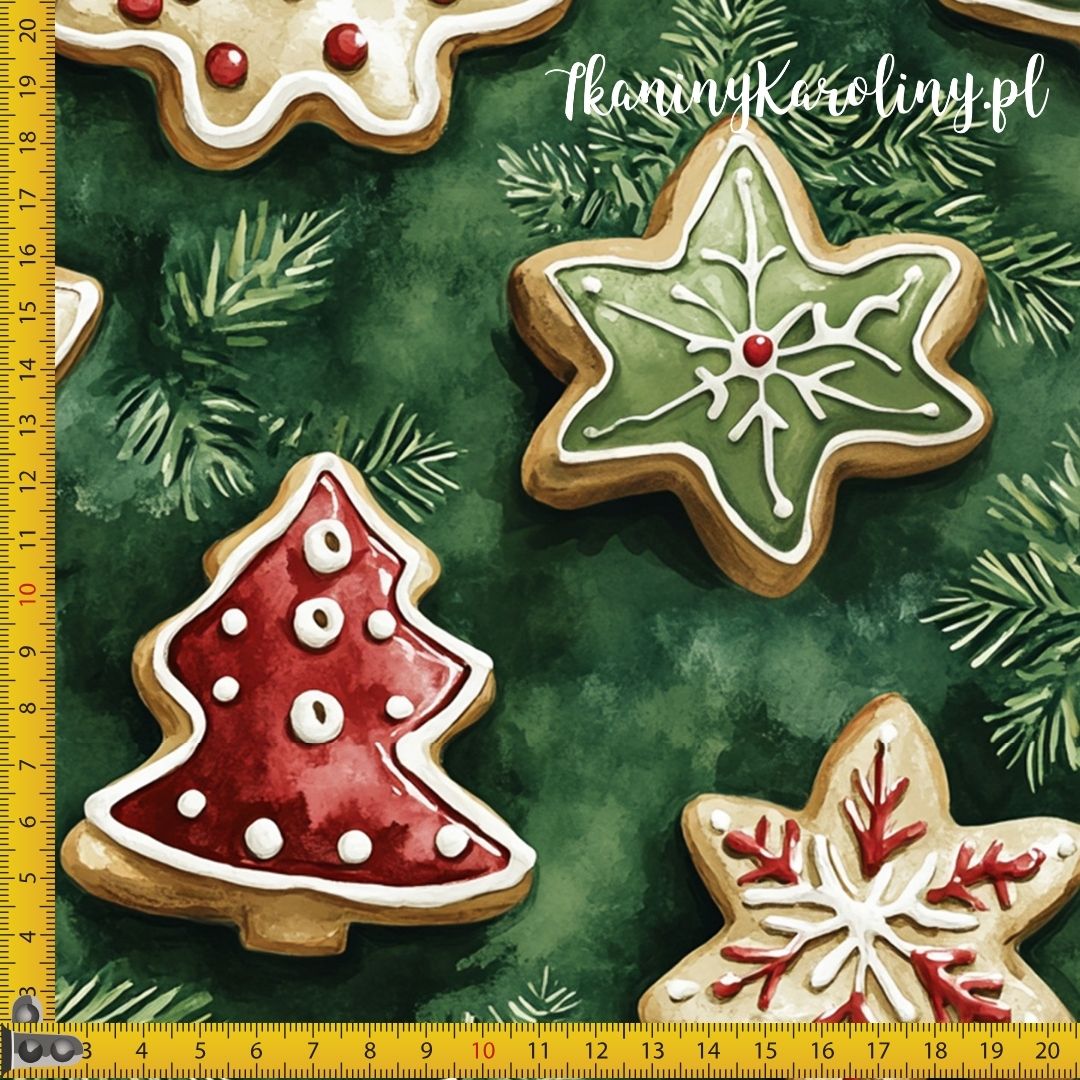 SOFTSHELL WODOODPORNY Wzory świąteczne - pierniczki lukrowane na zielonych gałązkach [6-8]