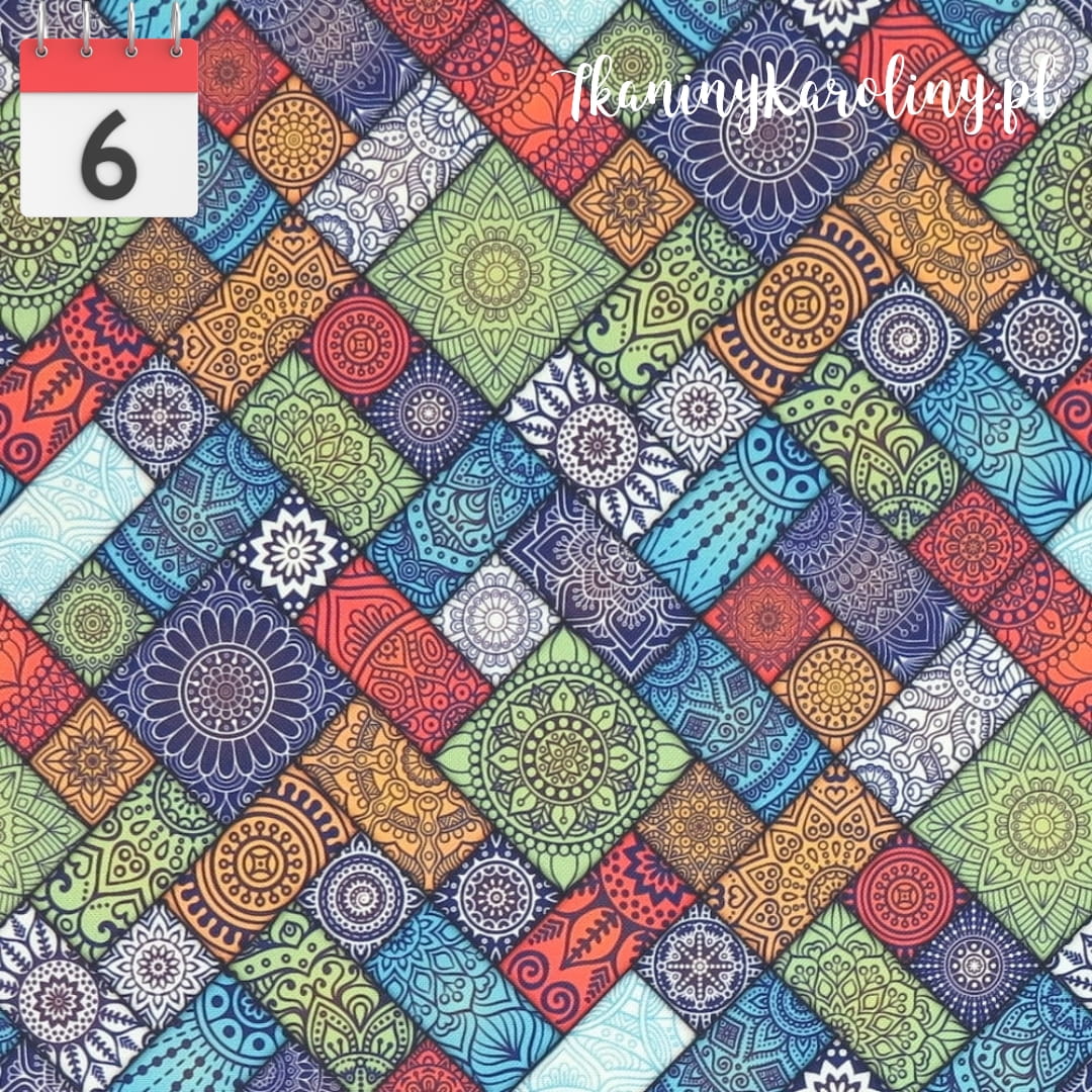 TKANINA WODOODPORNA Kafelki - mozaika zielono - pomarańczowa [6]