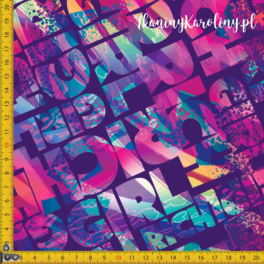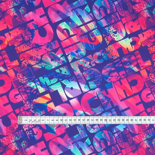 TKANINA WODOODPORNA Kolorowe napisy na fioletowym tle [6-8]