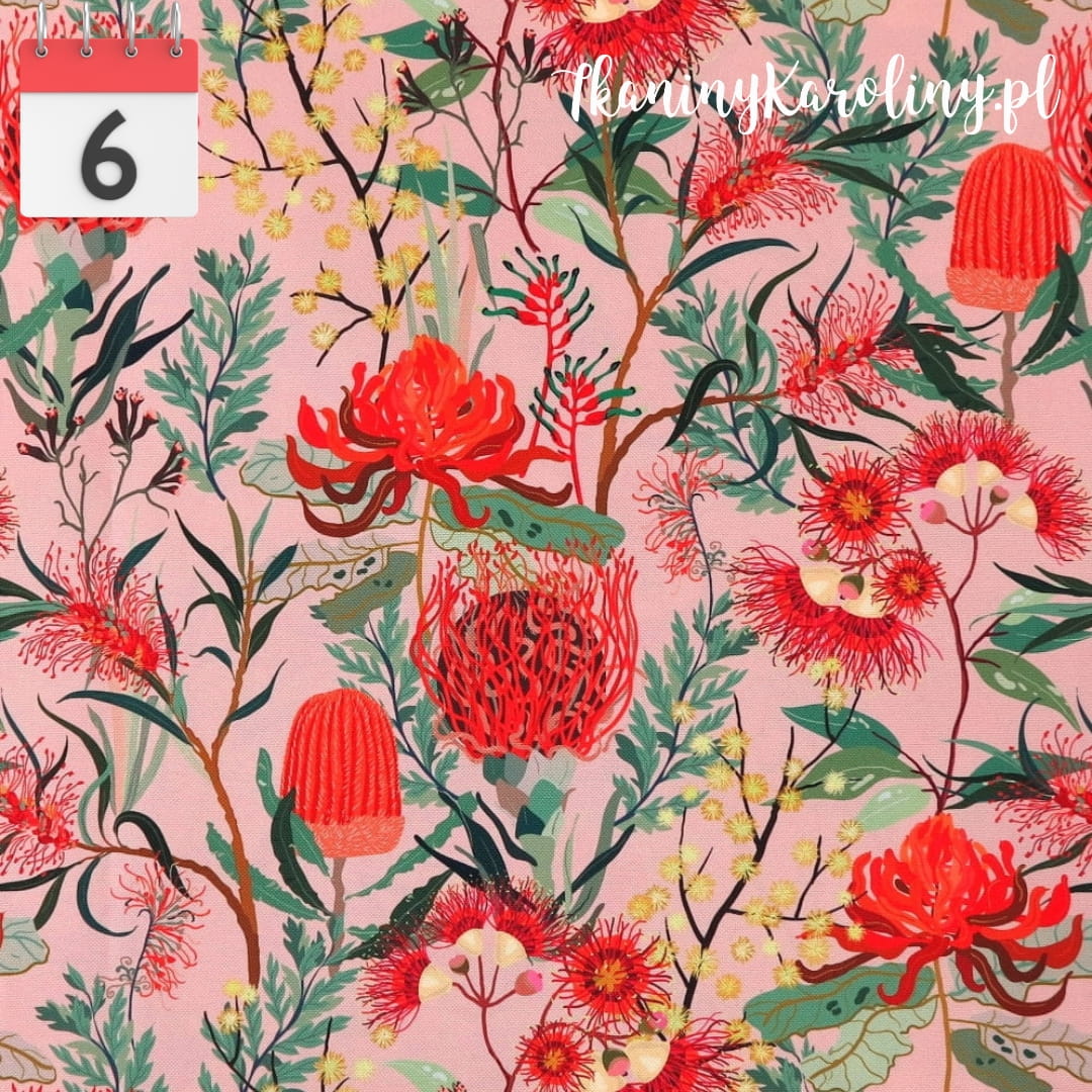 TKANINA WODOODPORNA Kwiaty australijskie na koralowym [6]