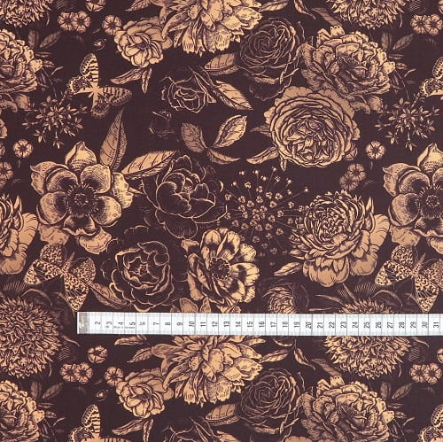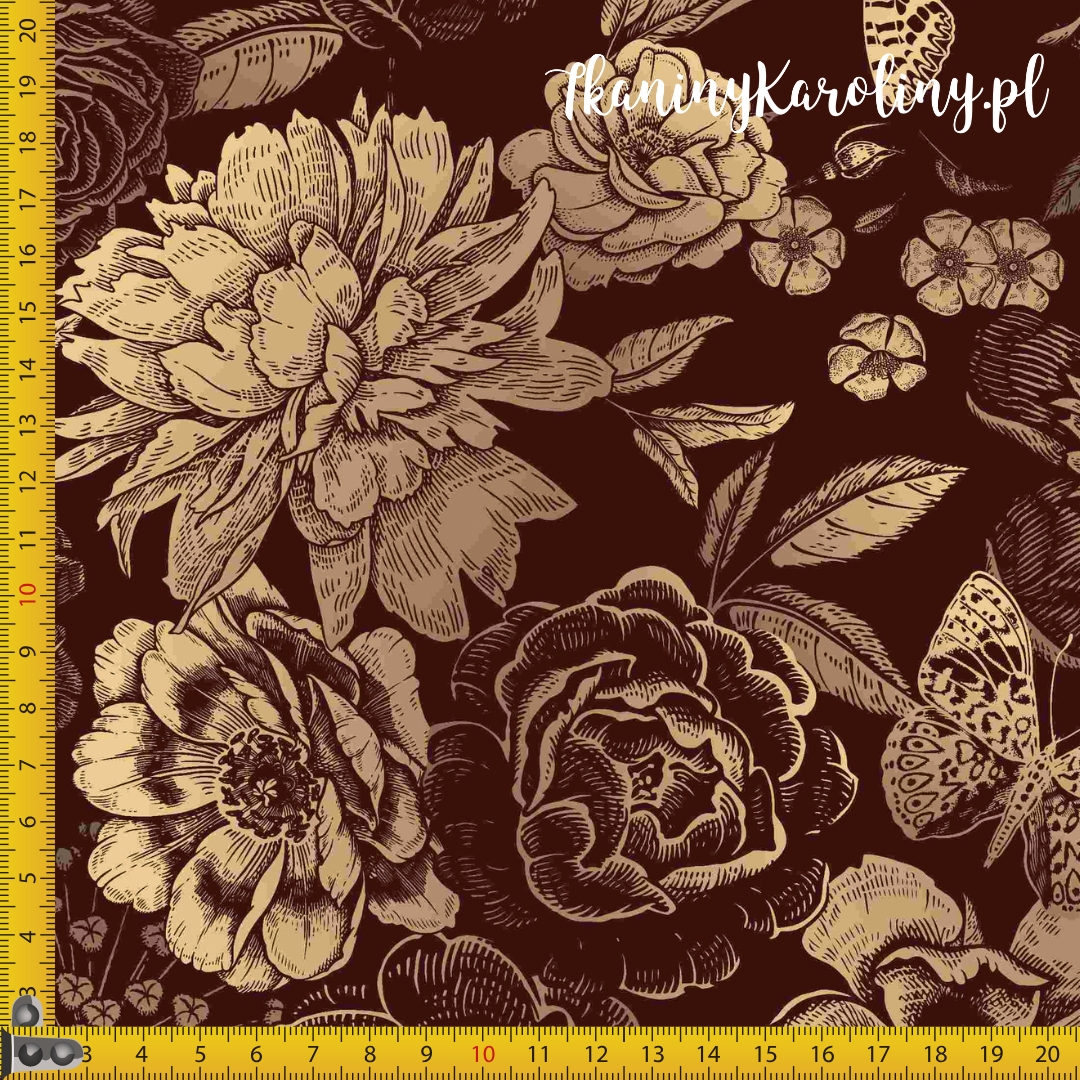 TKANINA WODOODPORNA Kwiaty ornament na brązowym [6-8]