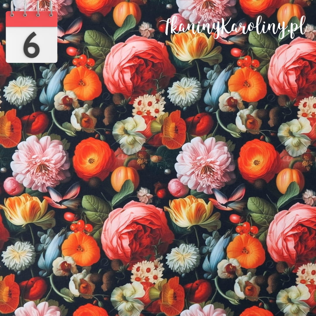 TKANINA WODOODPORNA Kwiaty pomarańczowe [6-8]