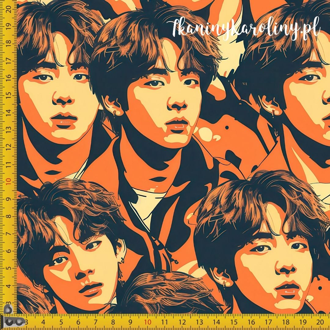 TKANINA WODOODPORNA OXFORD K-POP Chłopcy tricolor na pomarańczowym tle [6-8]
