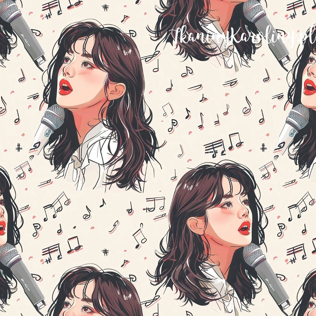 Subtelny wzór muzyczny K-POP na jasnym tle, wzbogacone o znaki muzyczne.