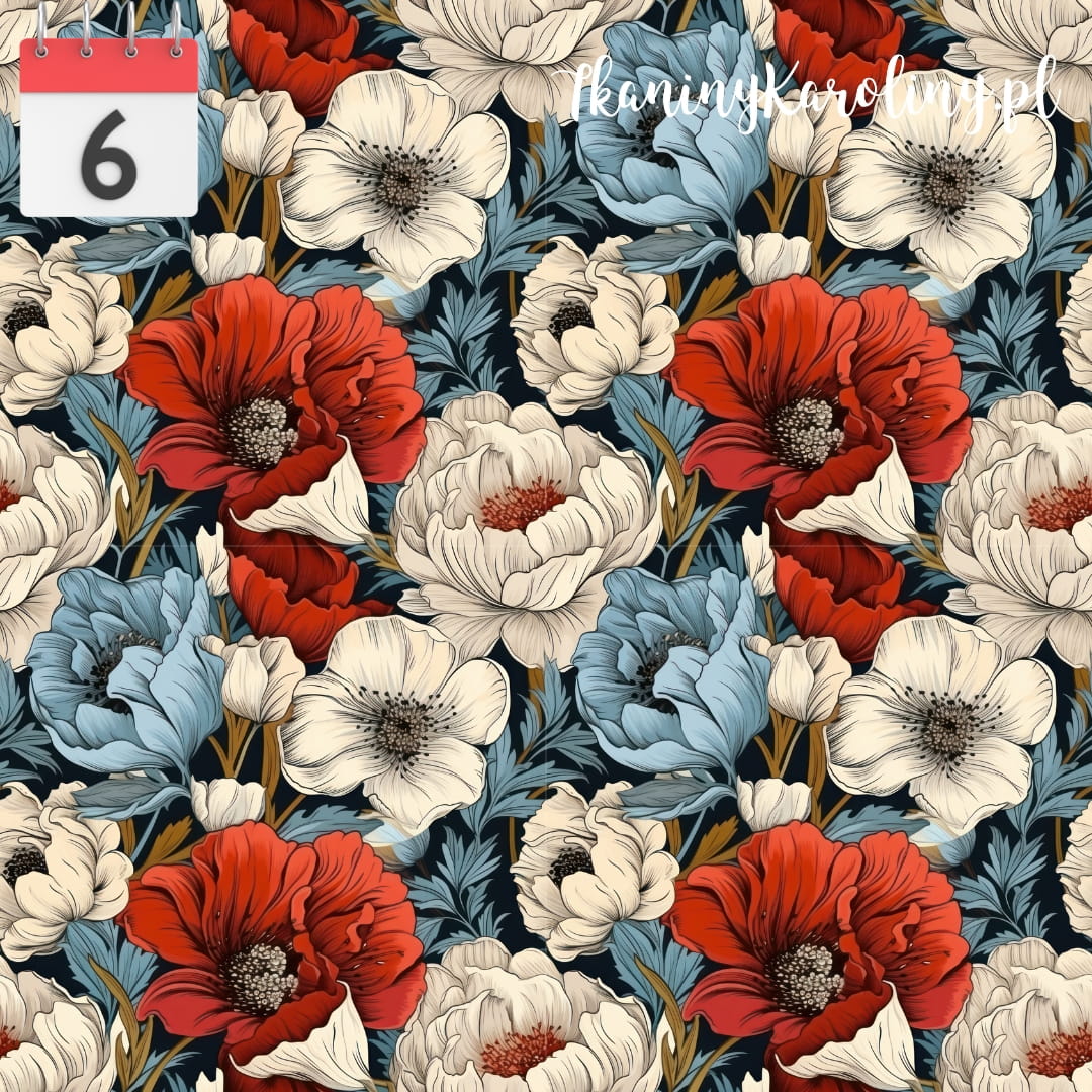 TKANINA WODOODPORNA OXFORD Kwiaty vintage mix czerwono białe [6]