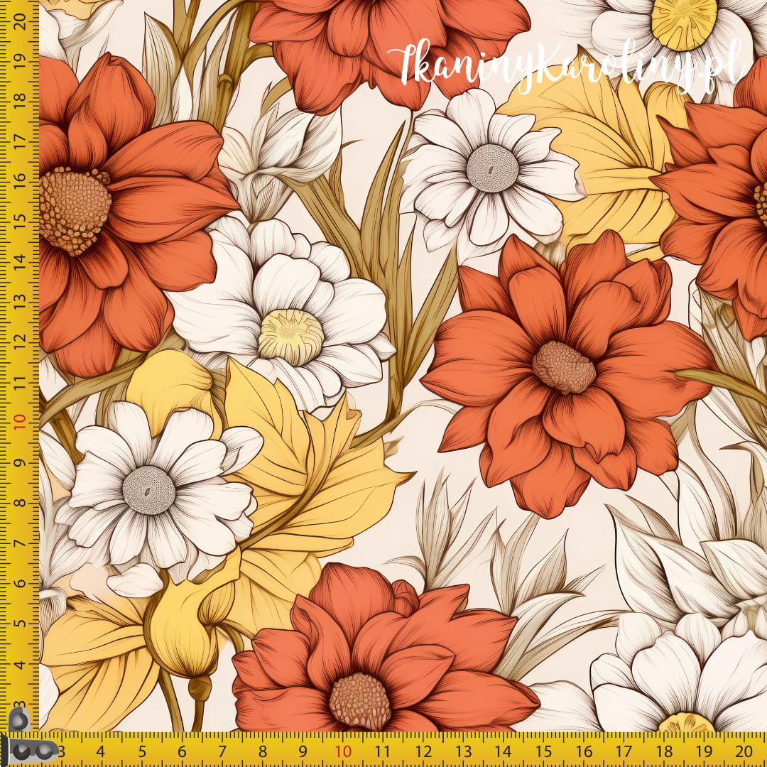 TKANINA WODOODPORNA OXFORD Kwiaty vintage mix pomarańczowo żółte [6]