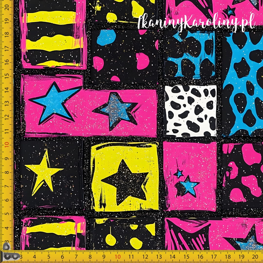 TKANINA WODOODPORNA OXFORD Neonowa abstrakcja kwadraciki [6]