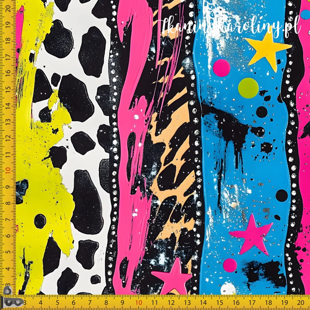 TKANINA WODOODPORNA OXFORD Neonowa abstrakcja pasy niebiesko-różowe [6]