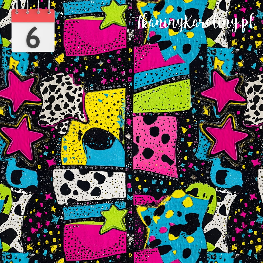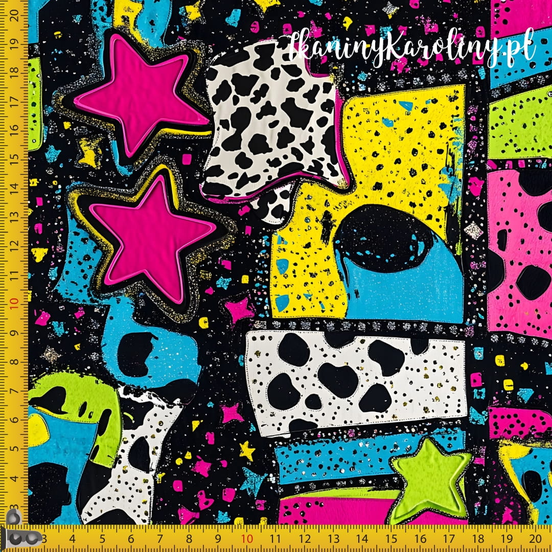TKANINA WODOODPORNA OXFORD Neonowa abstrakcja różowe gwiazdy [6]