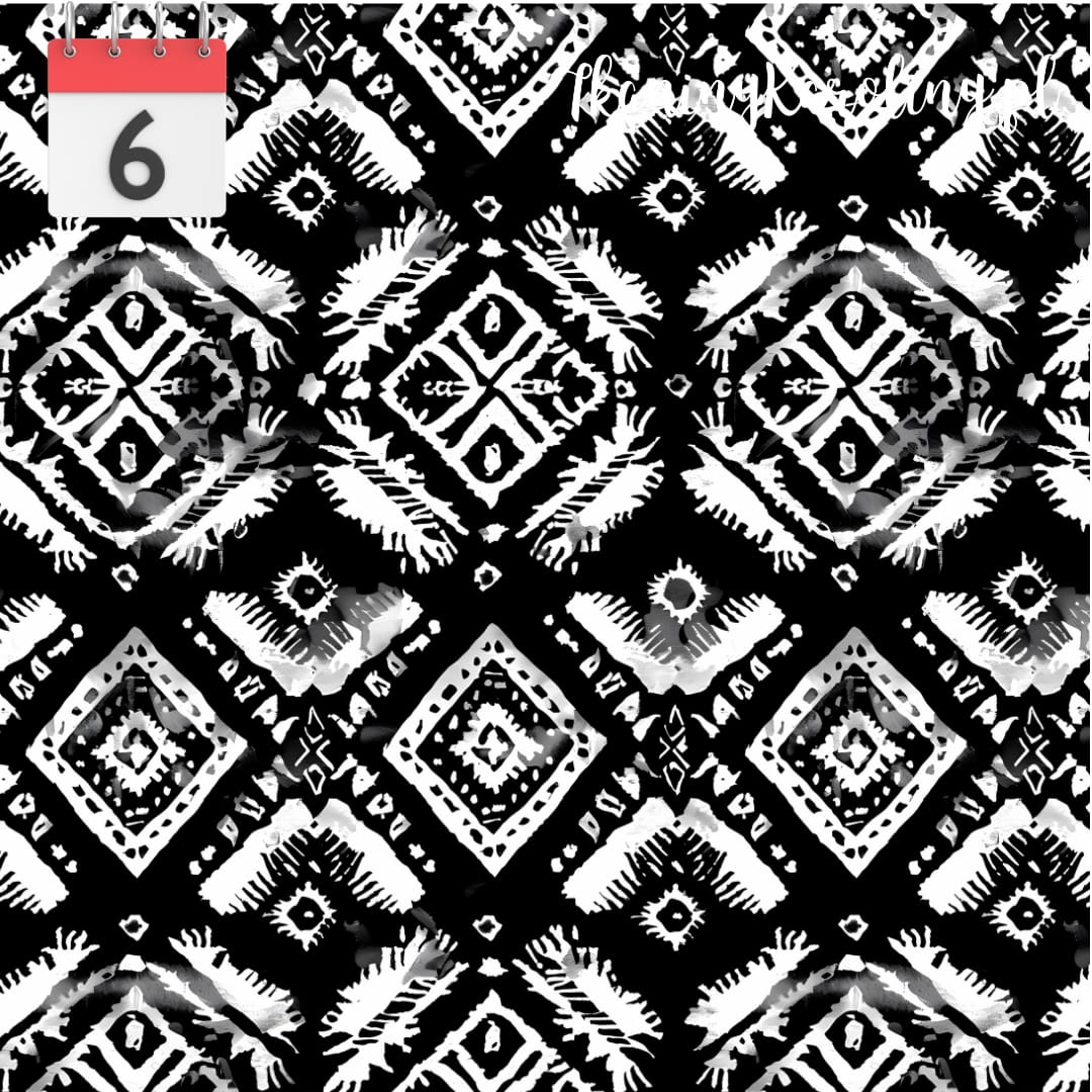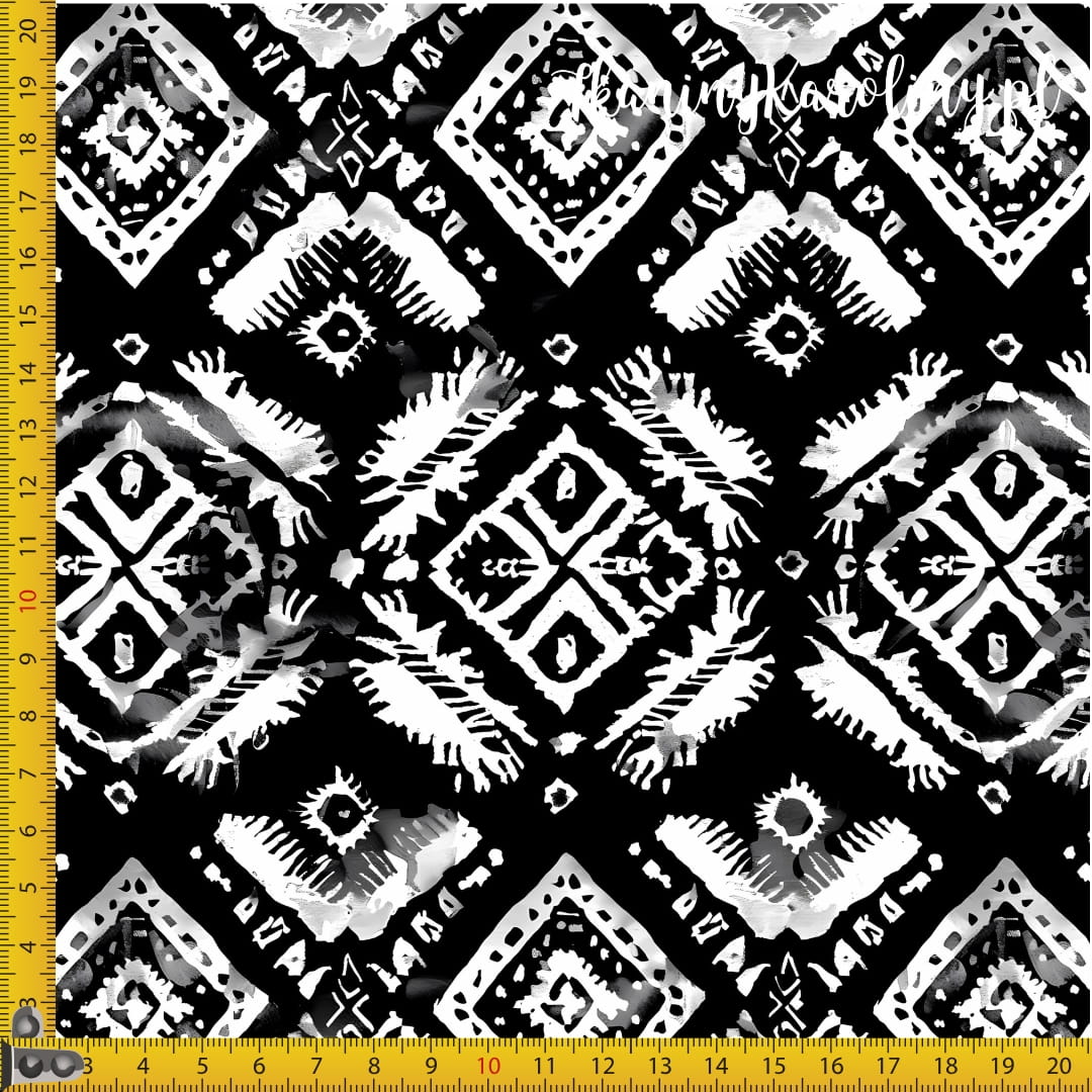 TKANINA WODOODPORNA OXFORD Wzór aztecki biały na czarnym [6]