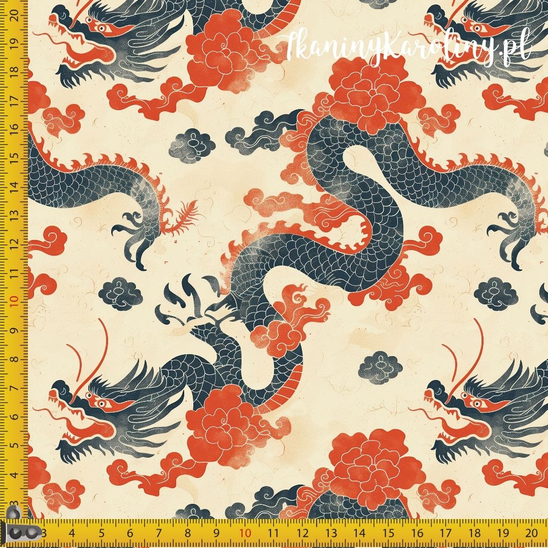 TKANINA WODOODPORNA OXFORD Wzory orientalne - Chiński smok w chmurach [6-8]