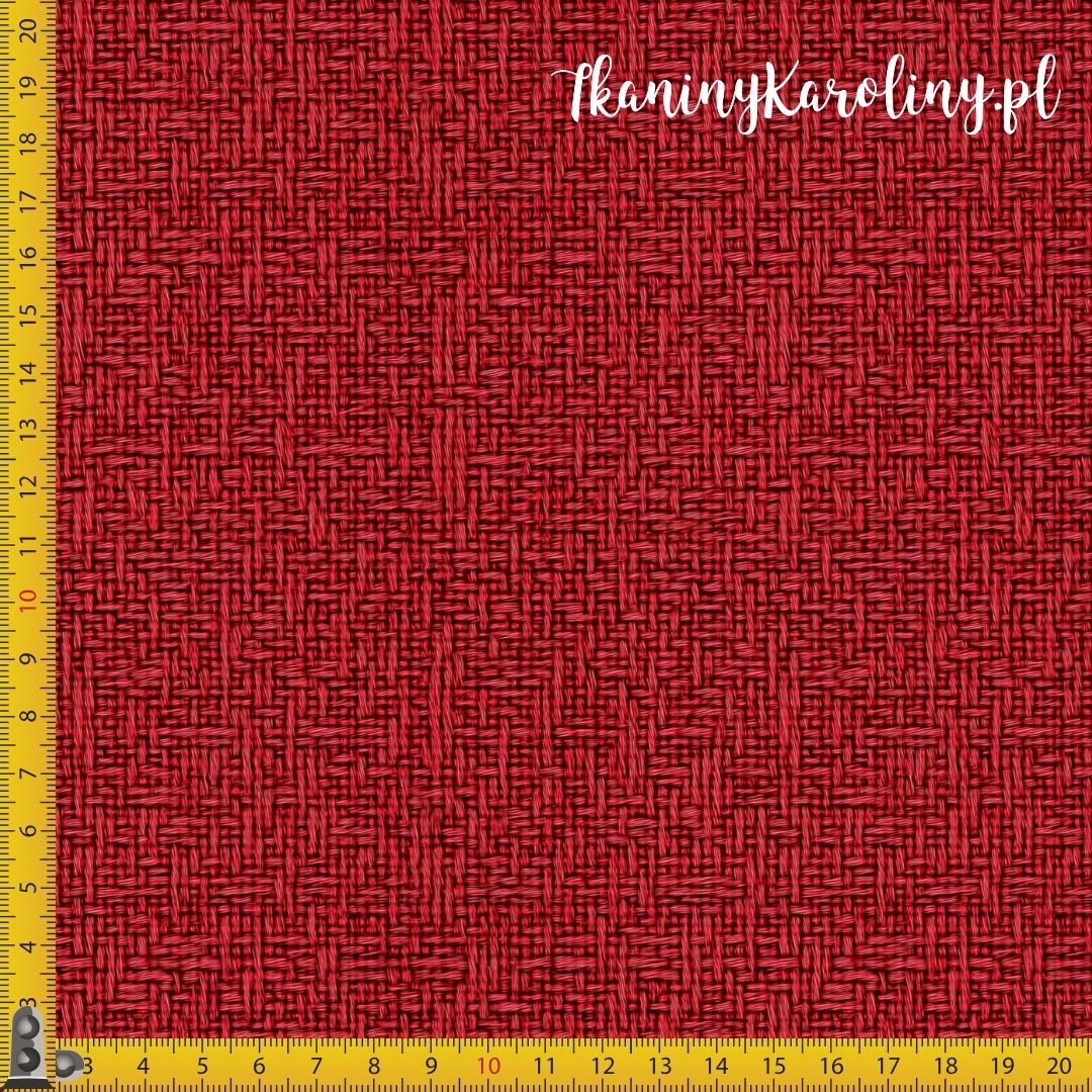 Wodoodporna świąteczna tkanina w pięknym, czerwonym kolorze. Wzór imitujący jutę – piękny, trwały i praktyczny do wszelkich projektów dekoracyjnych! Idealny na trwałe, wielorazowe i piękne świąteczne woreczki prezentowe i akcesoria.