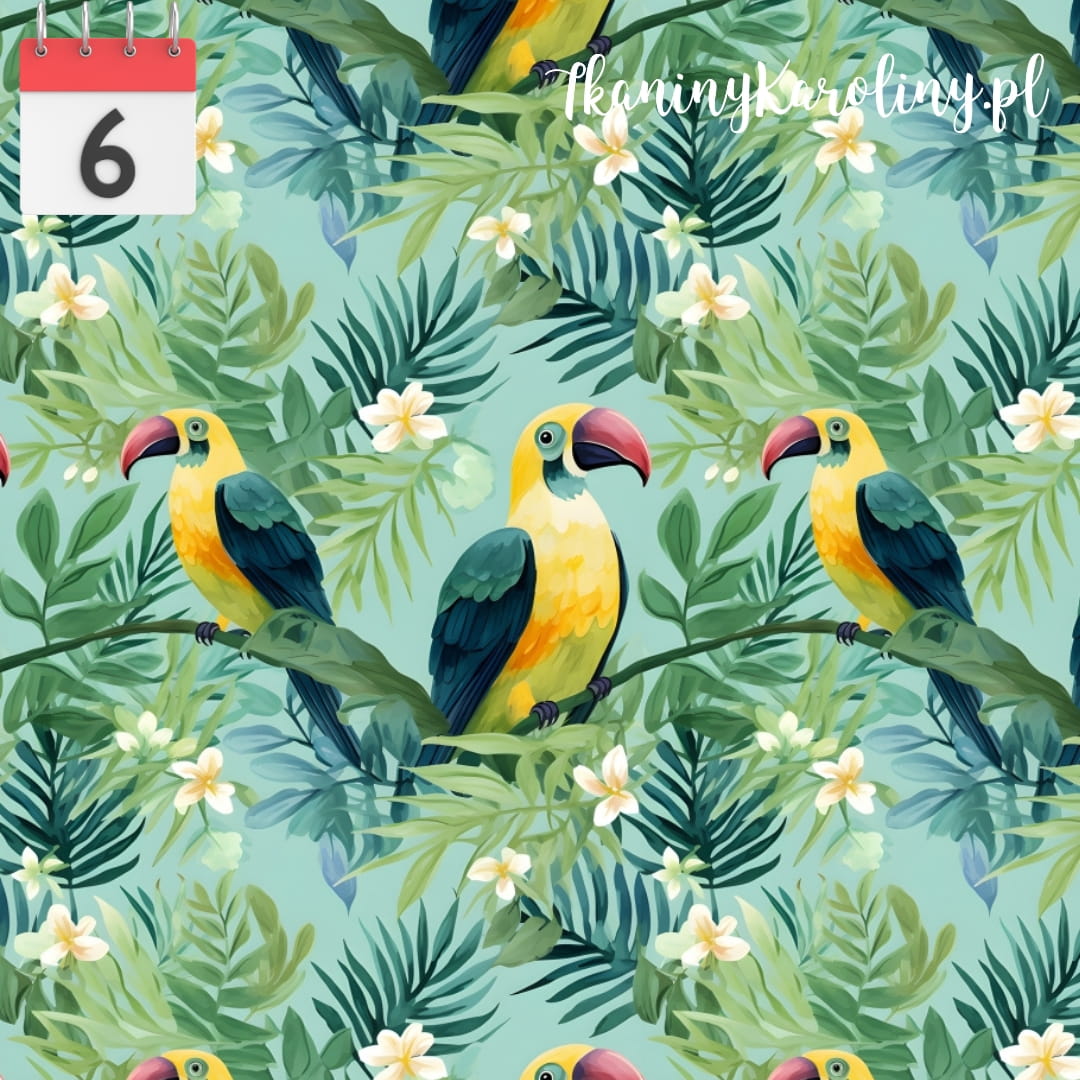 WELUR TAPICERSKI DRUKOWANY W dżungli Tukany 1 [6-8]