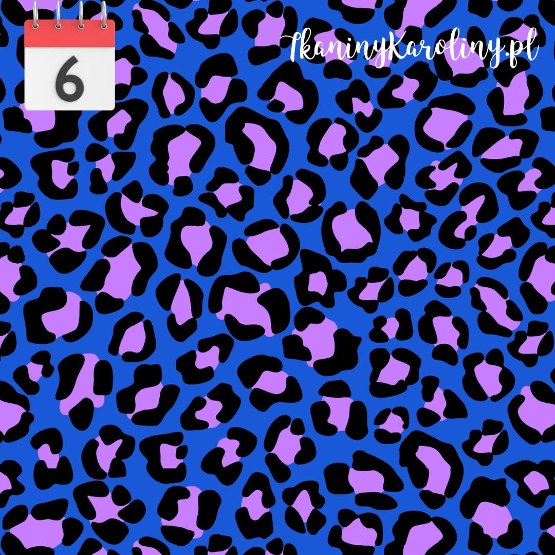 WELUR TAPICERSKI Kolorowa panterka - fioletowa na niebieskim [6-8]