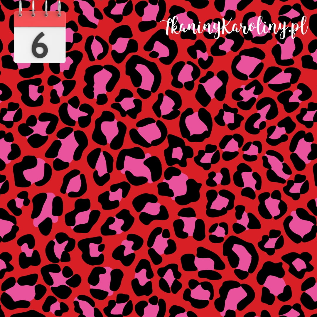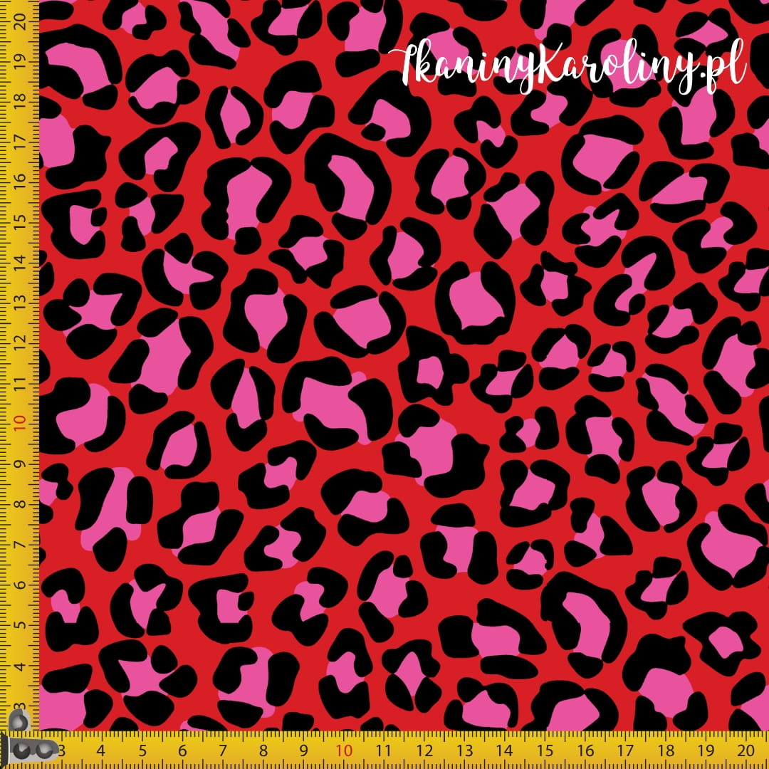 WELUR TAPICERSKI Kolorowa panterka - różowa na czerwonym [6-8]
