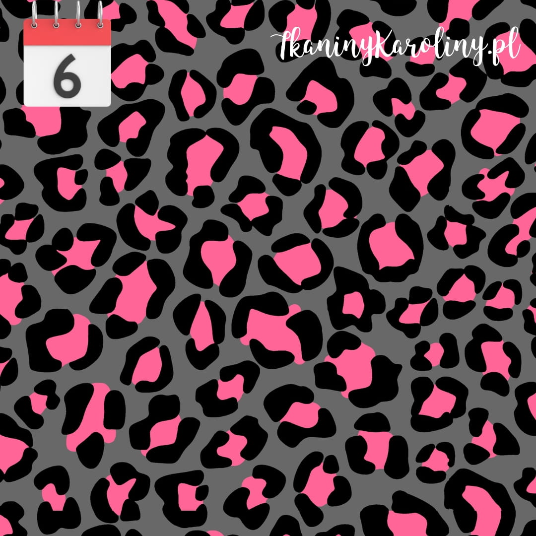 WELUR TAPICERSKI Kolorowa panterka - różowa na grafitowym [6-8]