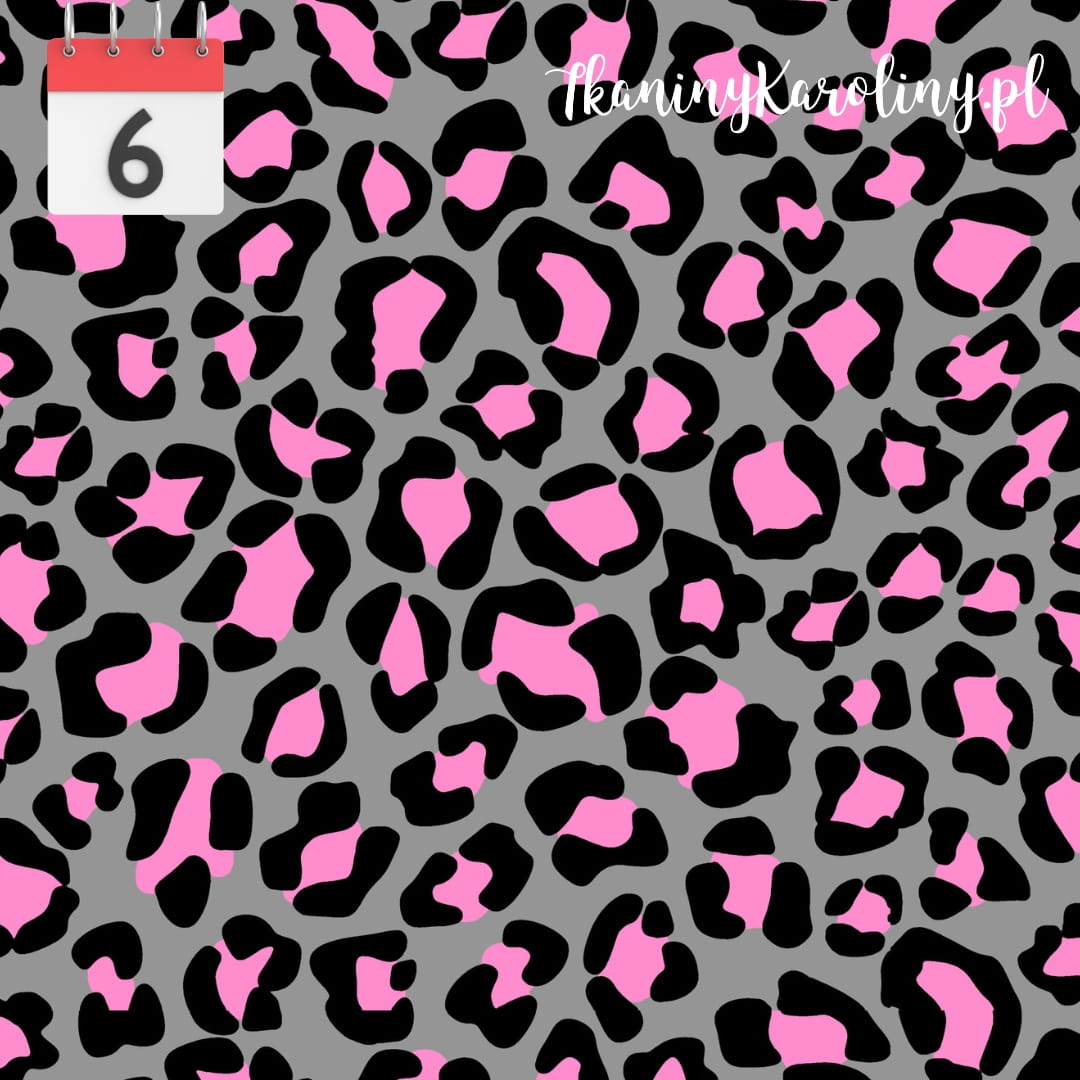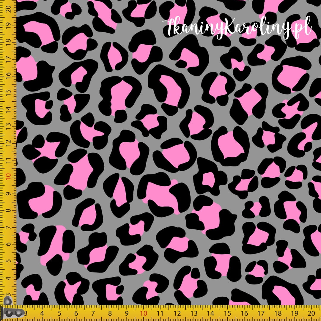 WELUR TAPICERSKI Kolorowa panterka - różowa na szarym [6-8]