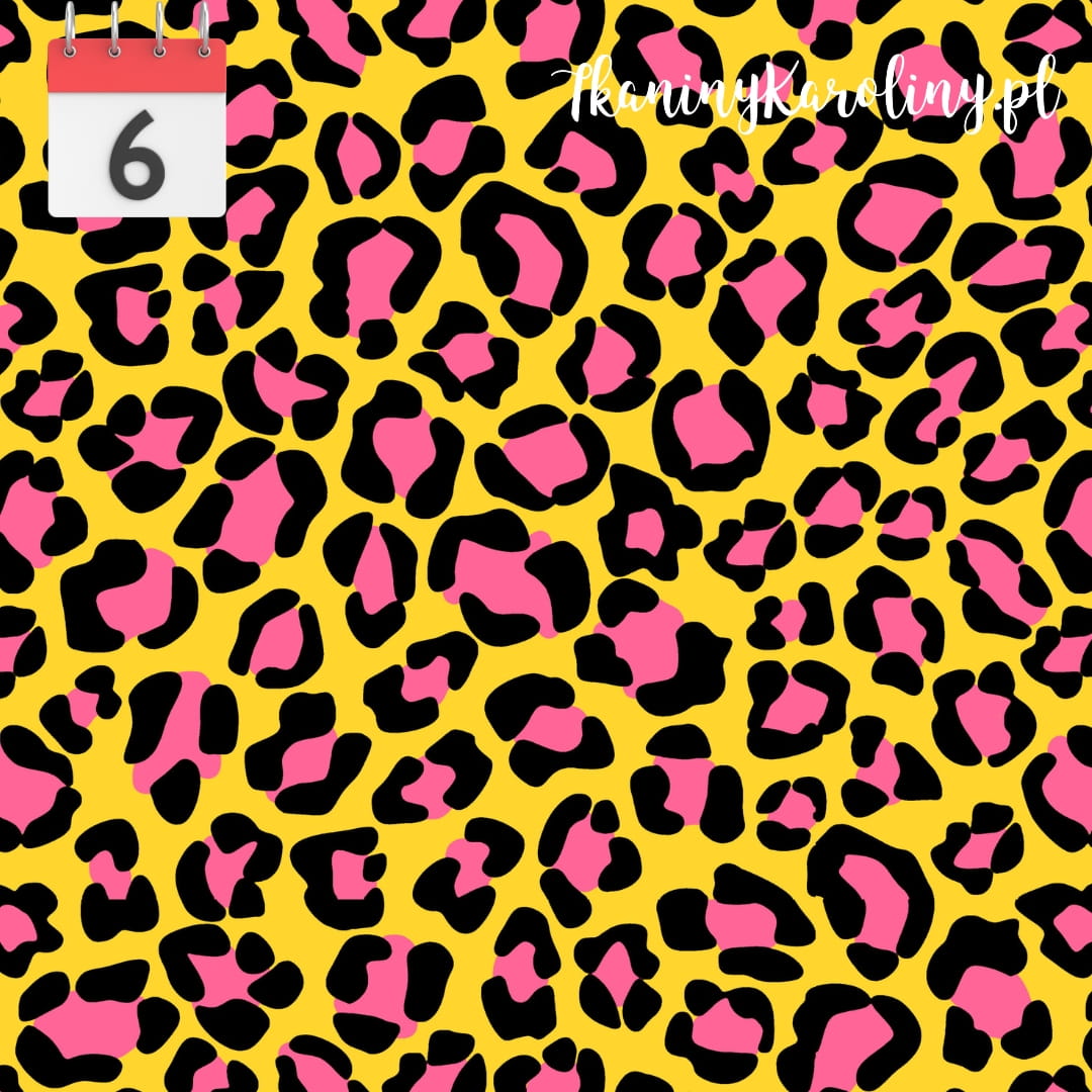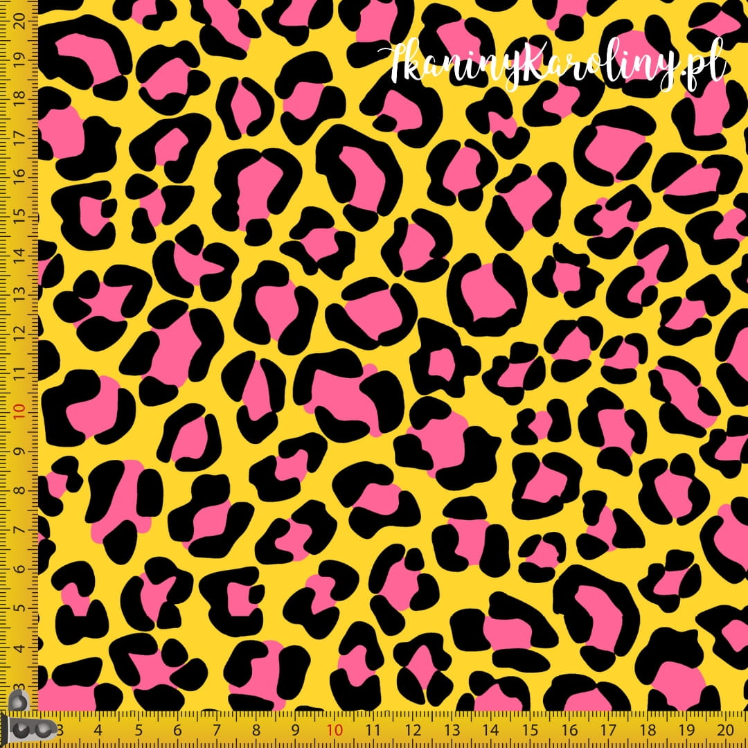 WELUR TAPICERSKI Kolorowa panterka - różowa na żółtym [6-8]