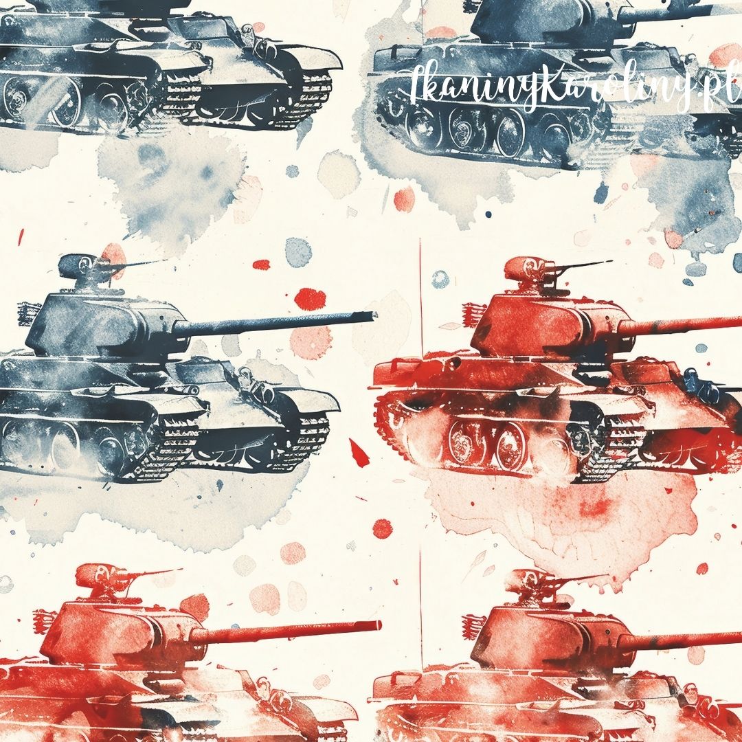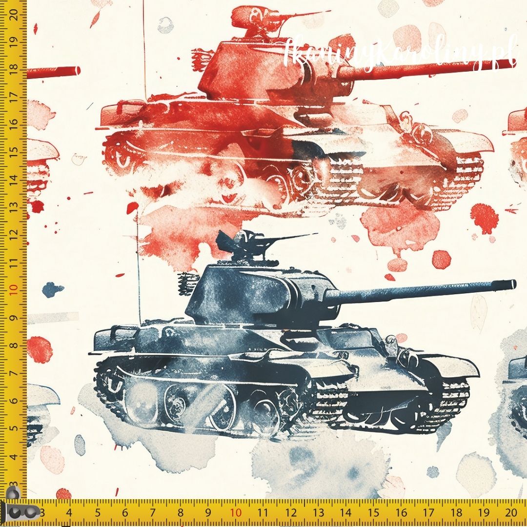 WELUR TAPICERSKI Wojskowy, czołgi czerwone, akwarela [6-8]
