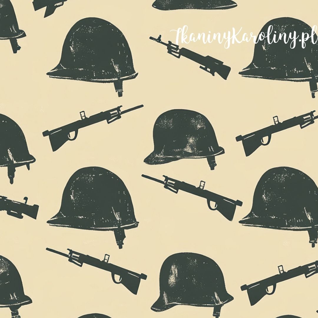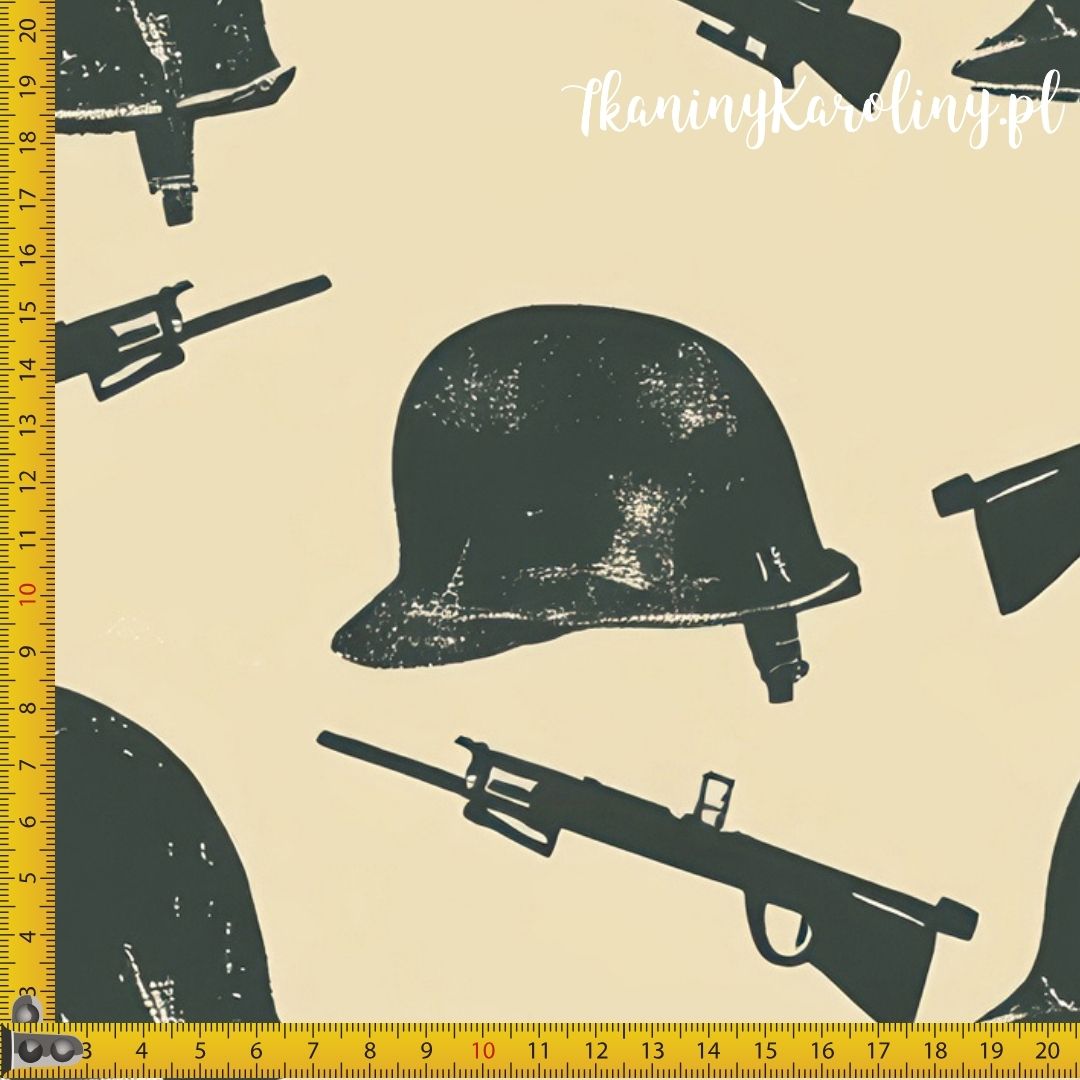 WELUR TAPICERSKI Wojskowy - broń i hełmy na beżu [6-8]