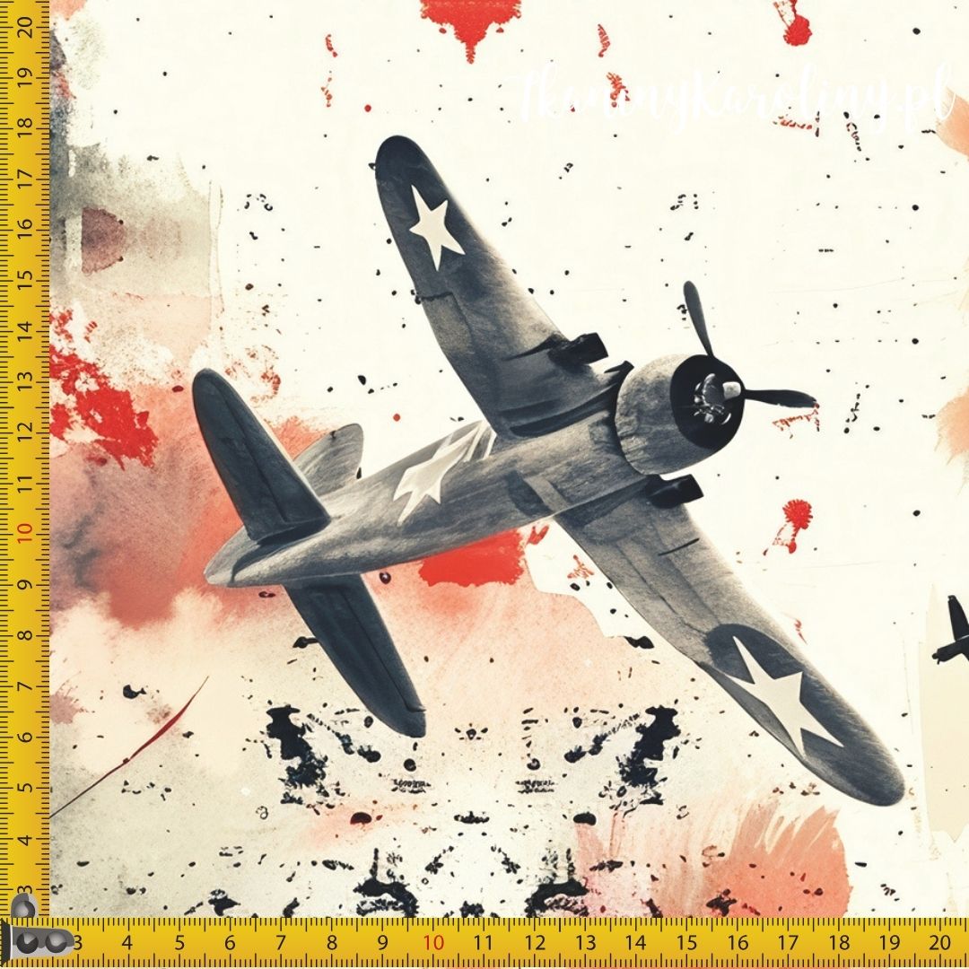 WELUR TAPICERSKI Wojskowy - samoloty na obrazie olejnym w to warzystwie czarnych rozprysków [6-8]