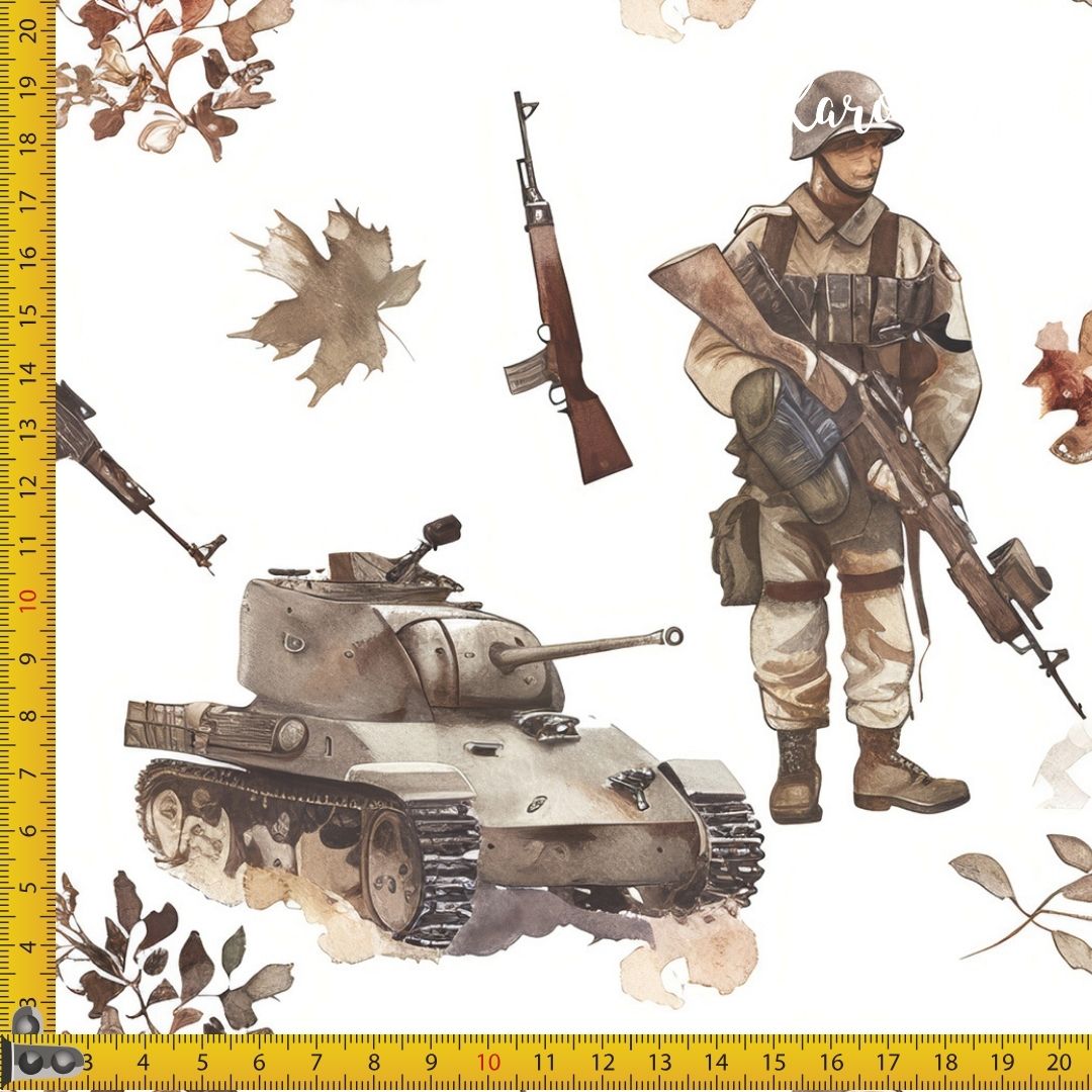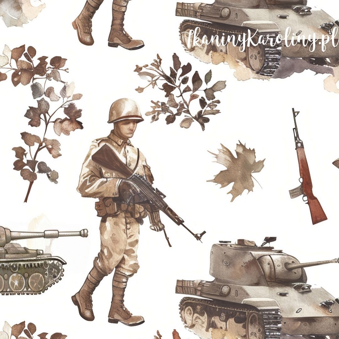 WELUR TAPICERSKI Wojskowy - żołnierz w liściach i czołgi (sepia) [6-8]