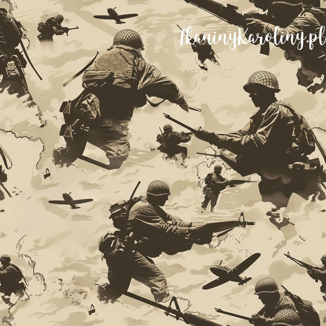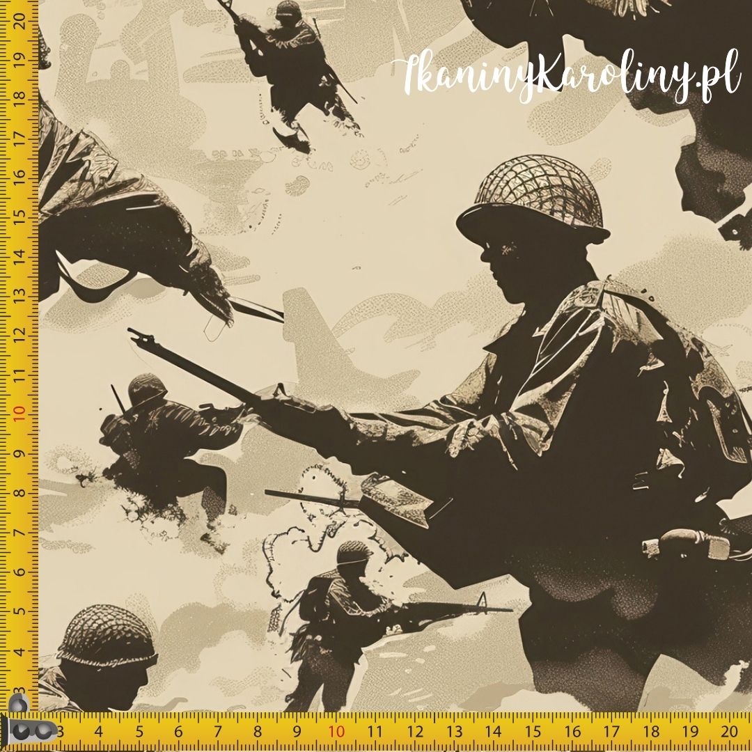 WELUR TAPICERSKI Wojskowy - żołnierze i samoloty na beżowym tle [6-8]