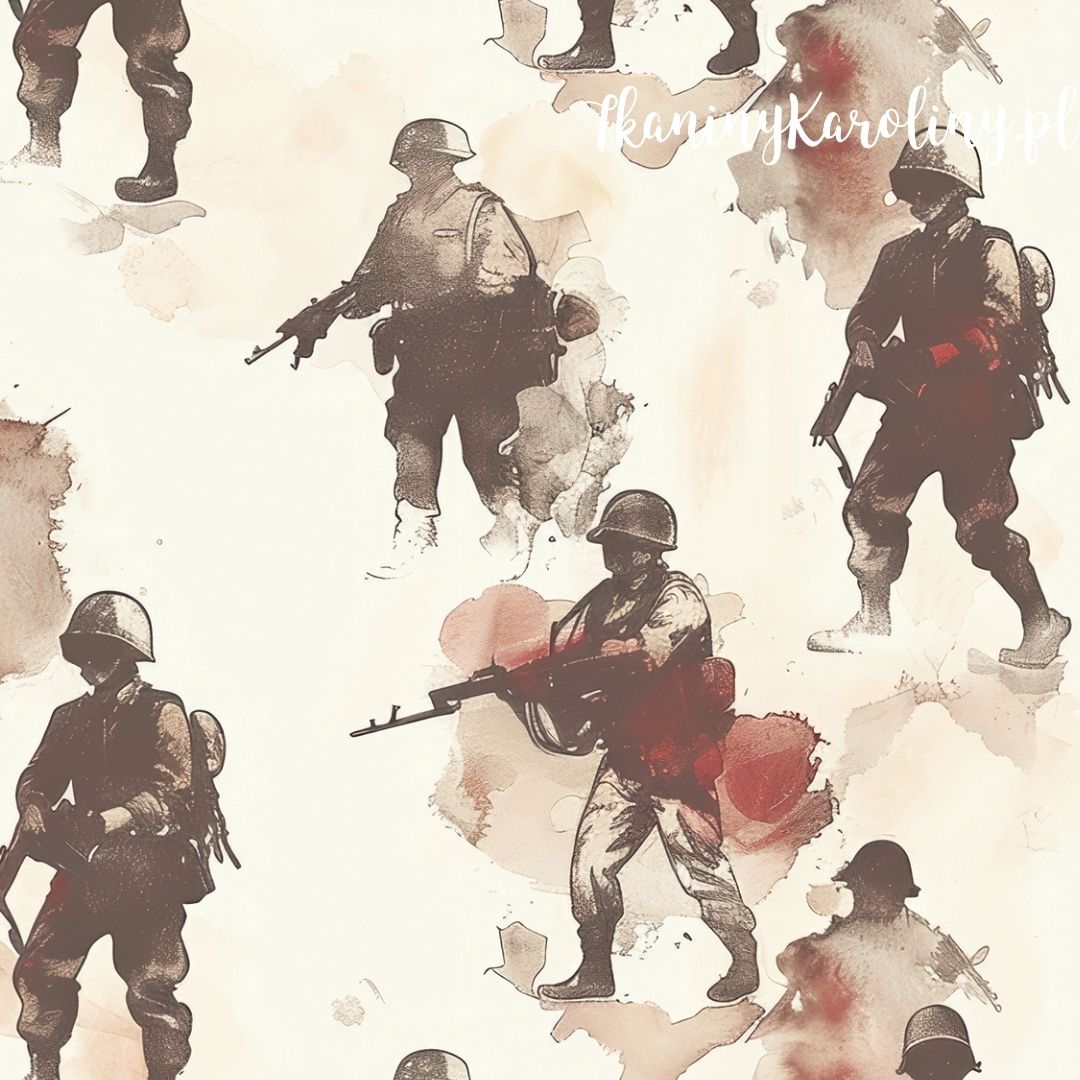 WELUR TAPICERSKI Wojskowy - żołnierze z karabinami, akwarela (sepia) [6-8]
