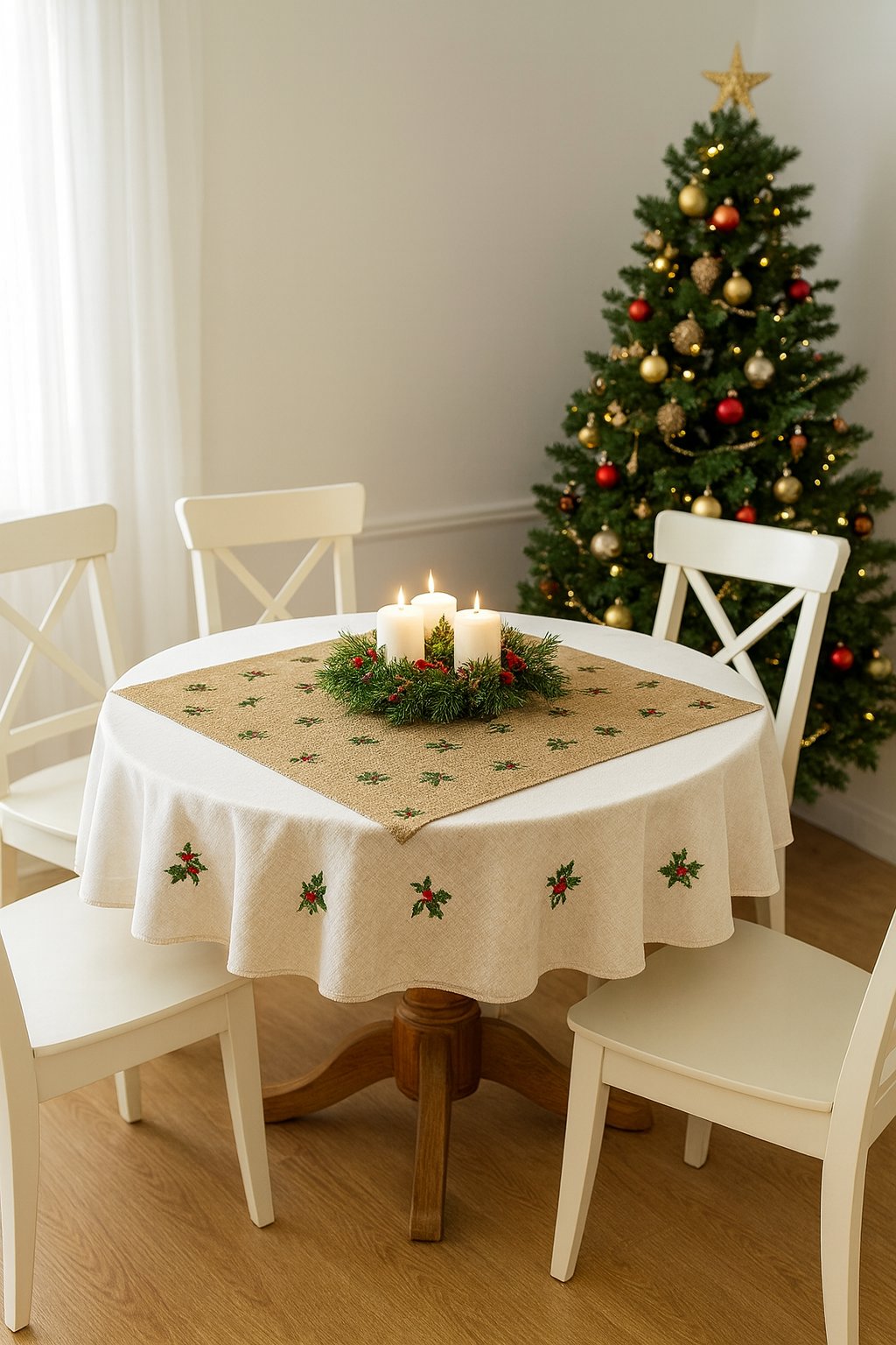 WELUR TAPICERSKI Wzory świąteczne, imitacja juty - ostrokrzew na beżu (luźny wzór) [6-8]
