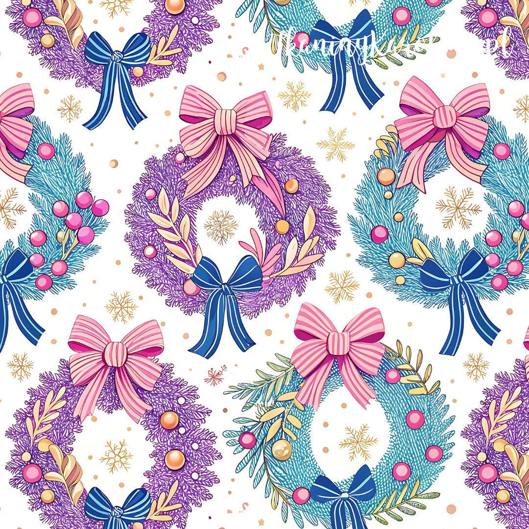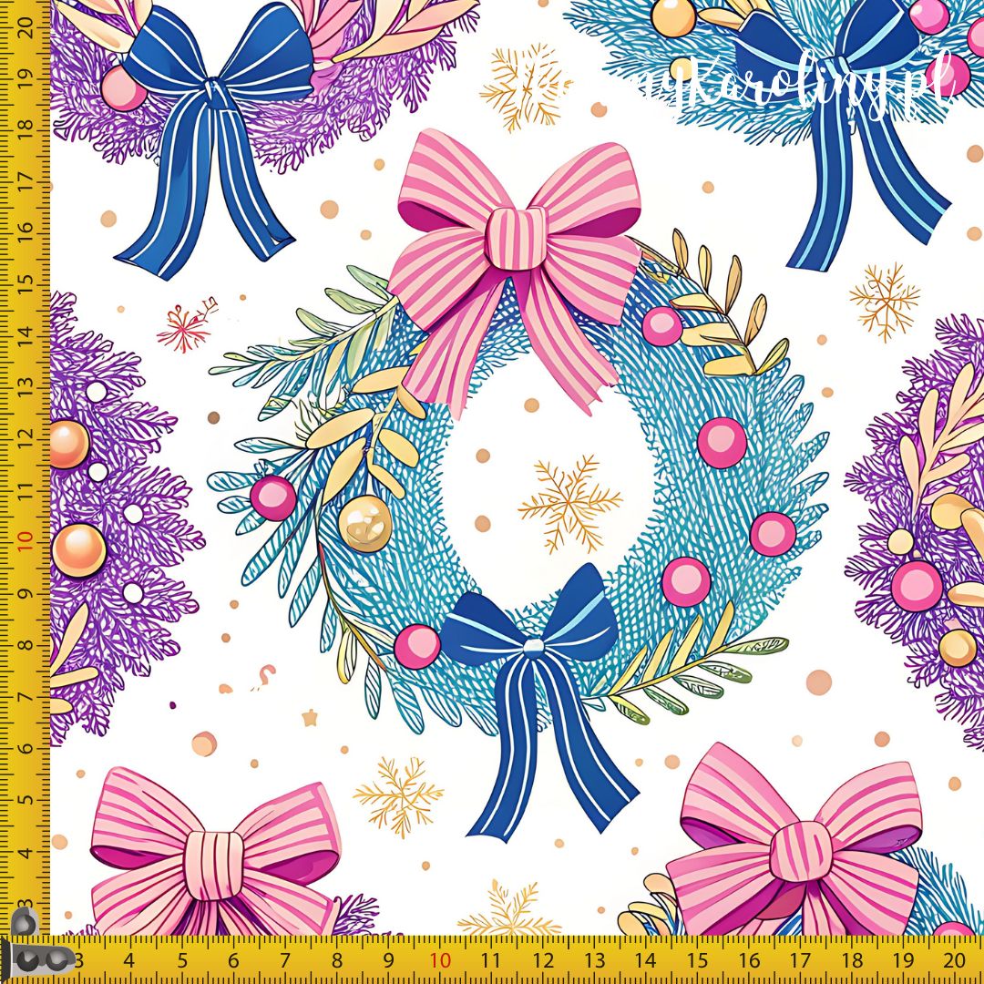 WELUR TAPICERSKI Wzory świąteczne, pastelowe - kolorowe wieńce w kokardach [6-8]