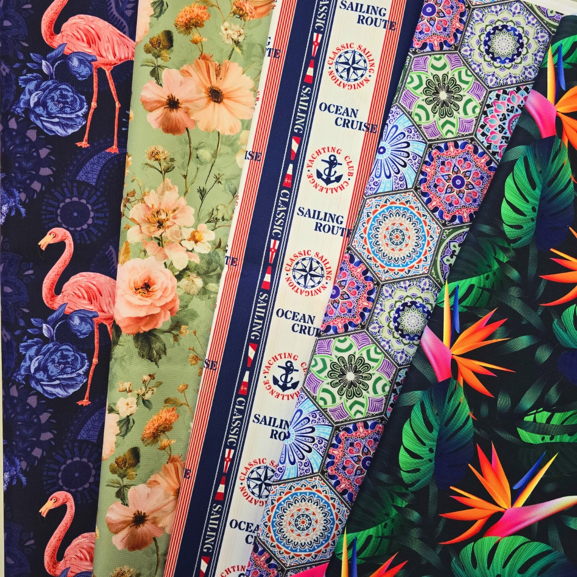 W zestawach znajdziecie tkaniny wodoodporne drukowane z różnymi wzorami.