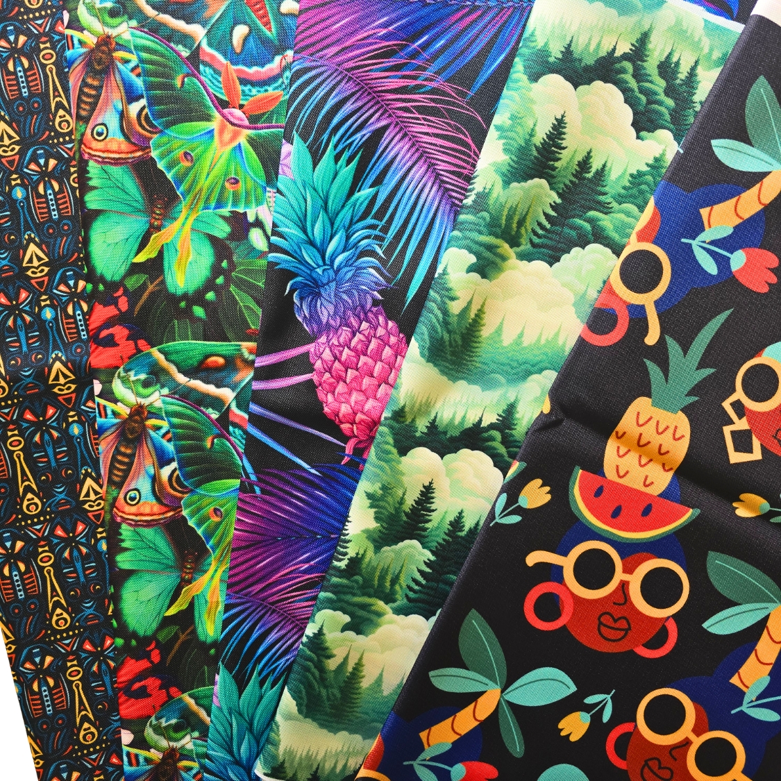 W zestawach znajdziecie tkaniny wodoodporne drukowane z różnymi wzorami.