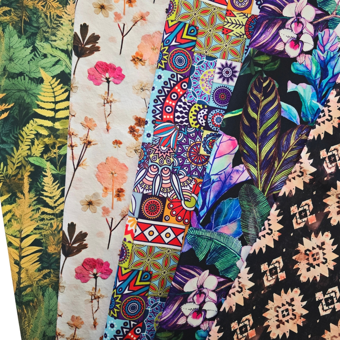 W zestawach znajdziecie tkaniny wodoodporne drukowane z różnymi wzorami.