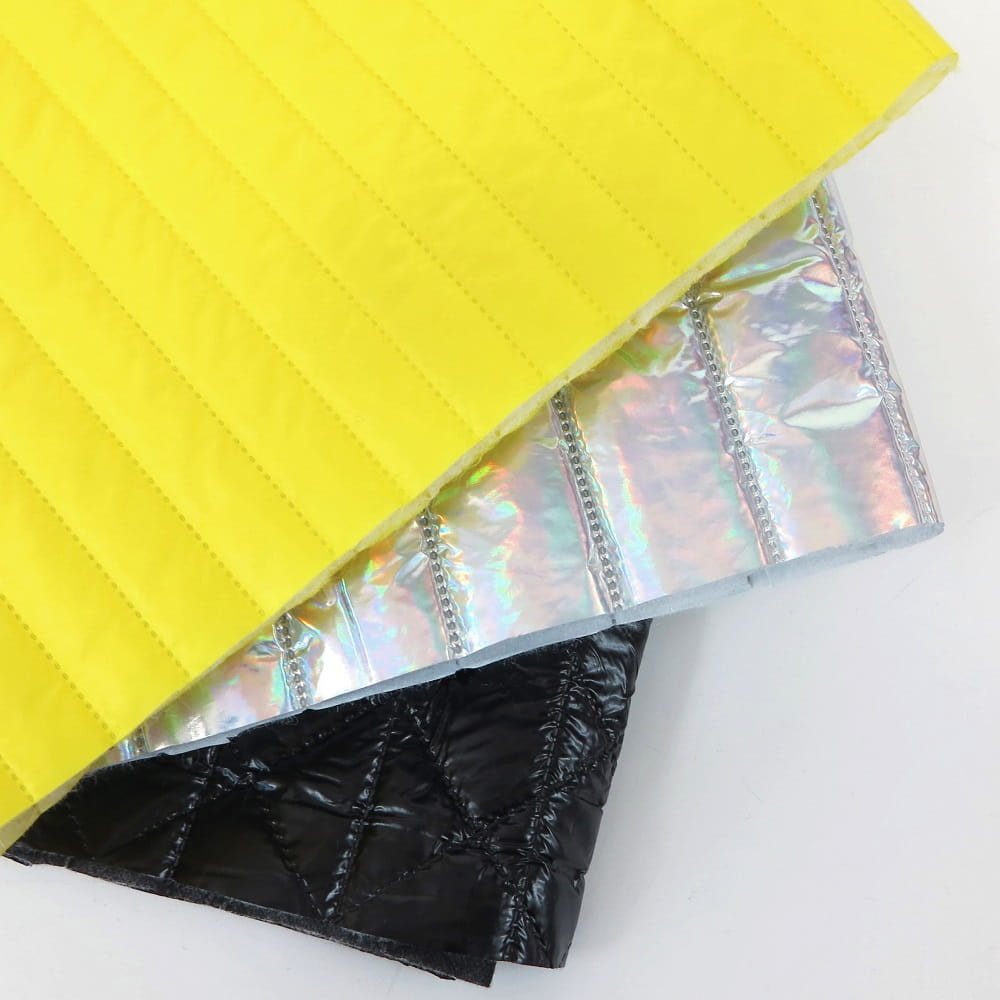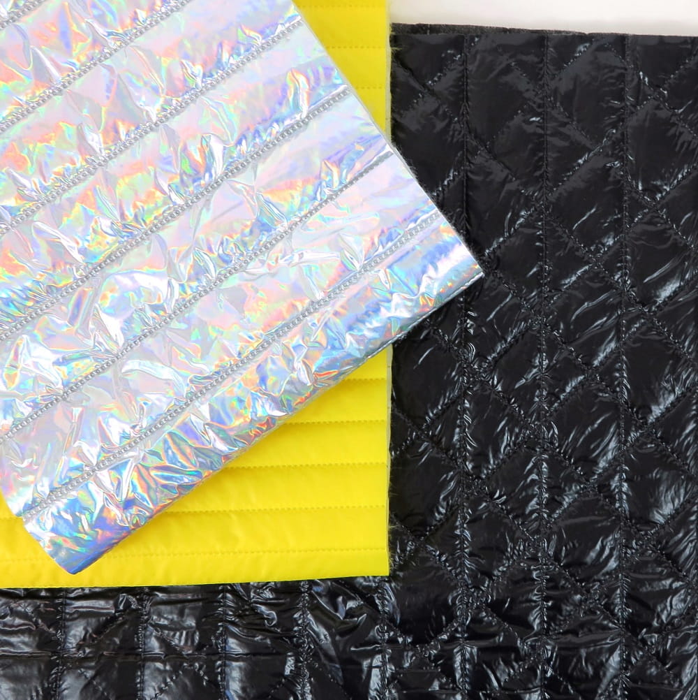 Zestaw końcówek tkanin ortalionowych pikowanych.